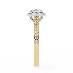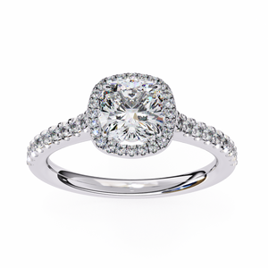 This 14K Cushion Cut Halo Diamond Engagement Ring is the perfect blend of brilliance and elegance. The cushion-cut center diamond is surrounded by a sparkling halo that amplifies its fire and size, while the pavé-set band adds extra shimmer and sophistication. Crafted for timeless beauty and everyday comfort, this ring captures the essence of everlasting love and refined luxury a true statement of commitment and grace.
