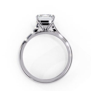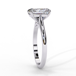 This 14K emerald cut solitaire diamond engagement ring showcases refined sophistication. The elongated step-cut diamond radiates a mesmerizing mirror-like clarity, set atop a lustrous rose gold band for a modern yet timeless look. Designed for those who value understated elegance and enduring brilliance.