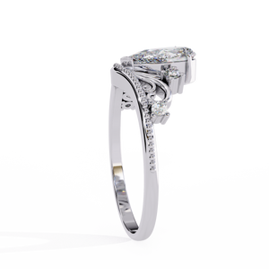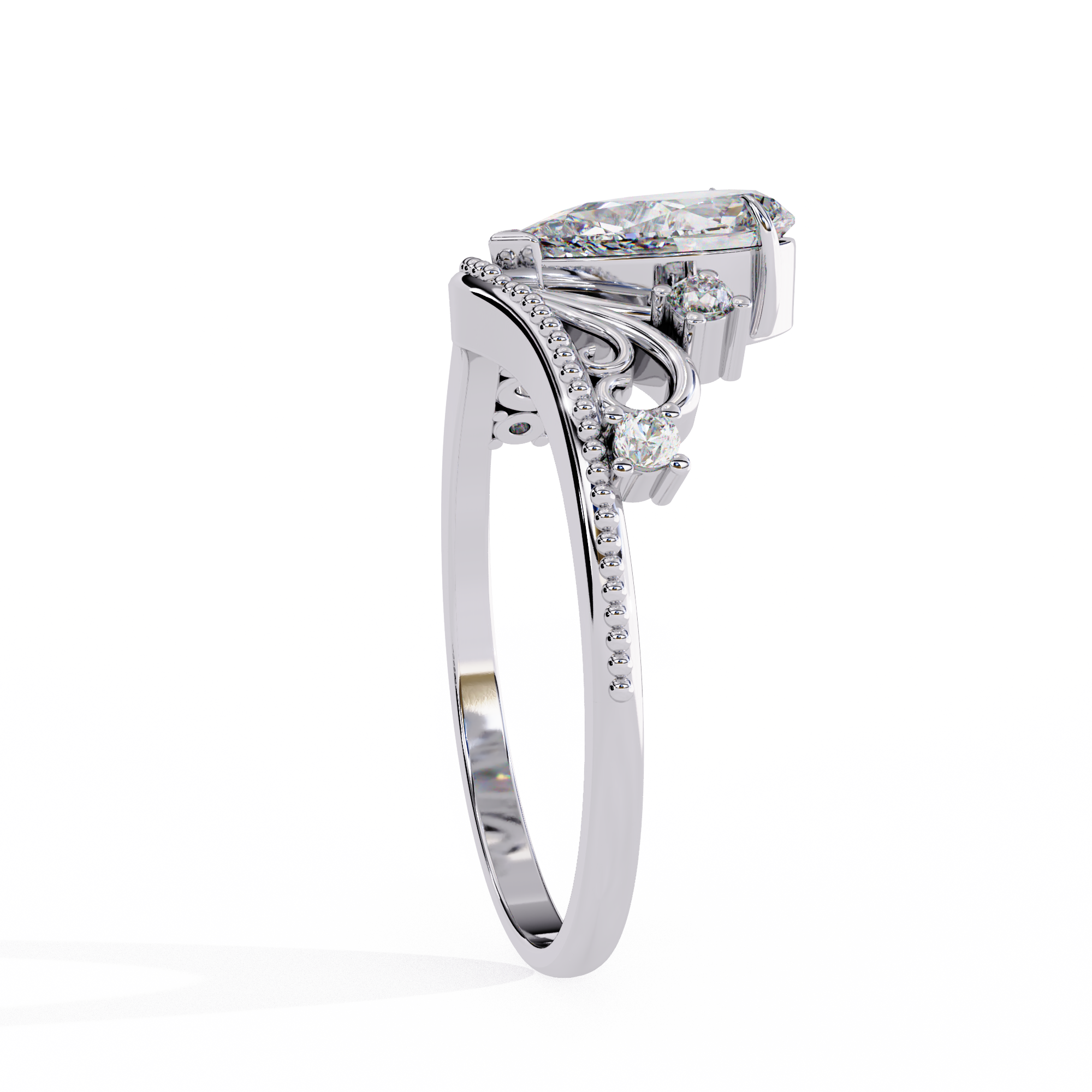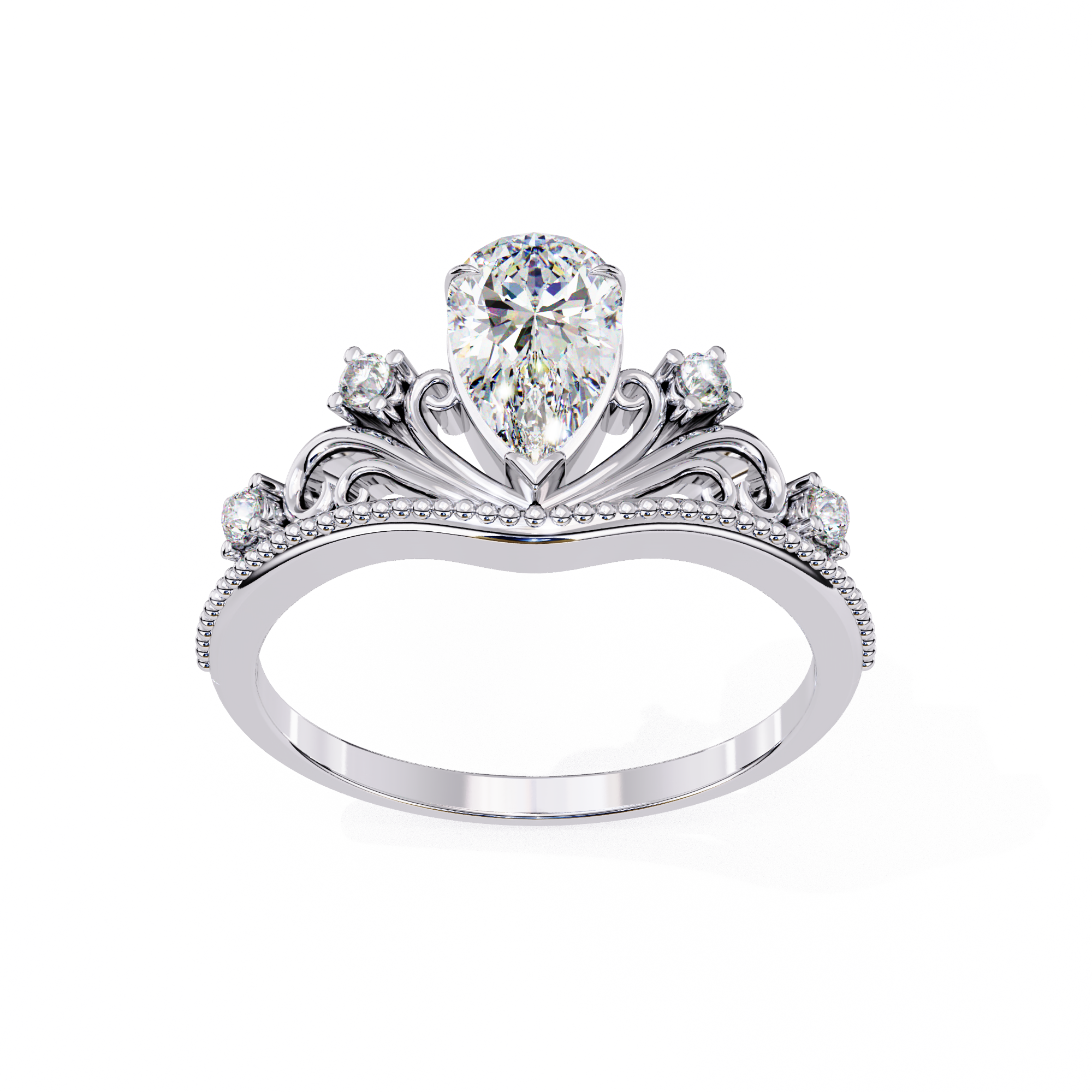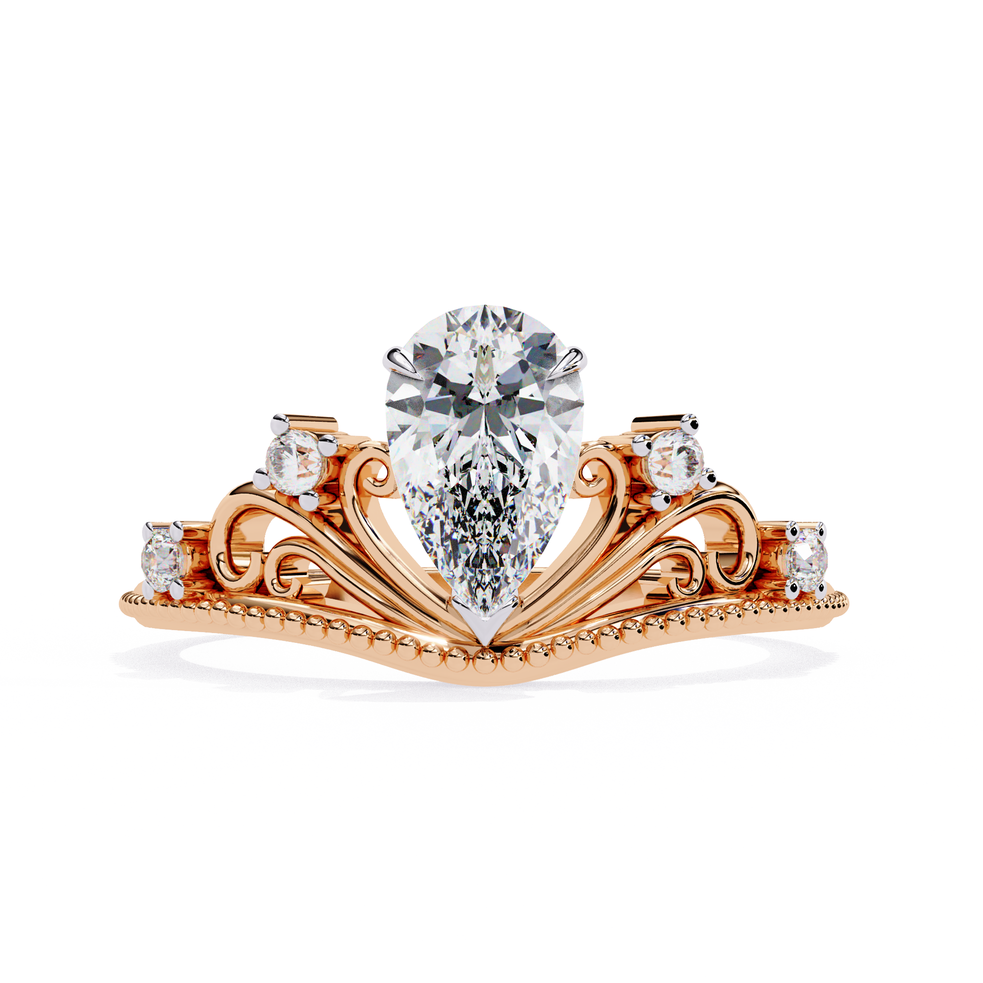 This 14K pear-cut diamond engagement ring features an exquisite vintage-inspired filigree design accented with shimmering round diamonds. The elegant scrollwork and milgrain detailing create a regal, crown-like look that exudes timeless charm. Perfect for brides who appreciate intricate craftsmanship, romantic flair, and a truly one-of-a-kind statement piece.
