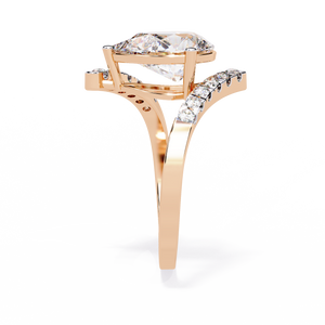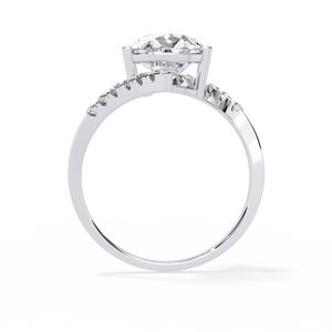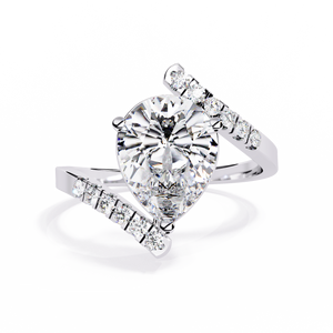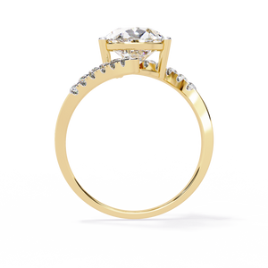 This 14K Pear Diamond Open Twist Engagement Ring features a brilliant pear-cut center diamond embraced by a gracefully curved open band lined with sparkling side stones. Its modern asymmetrical twist design enhances the diamond’s brilliance, creating a unique and romantic statement piece perfect for today’s bride.