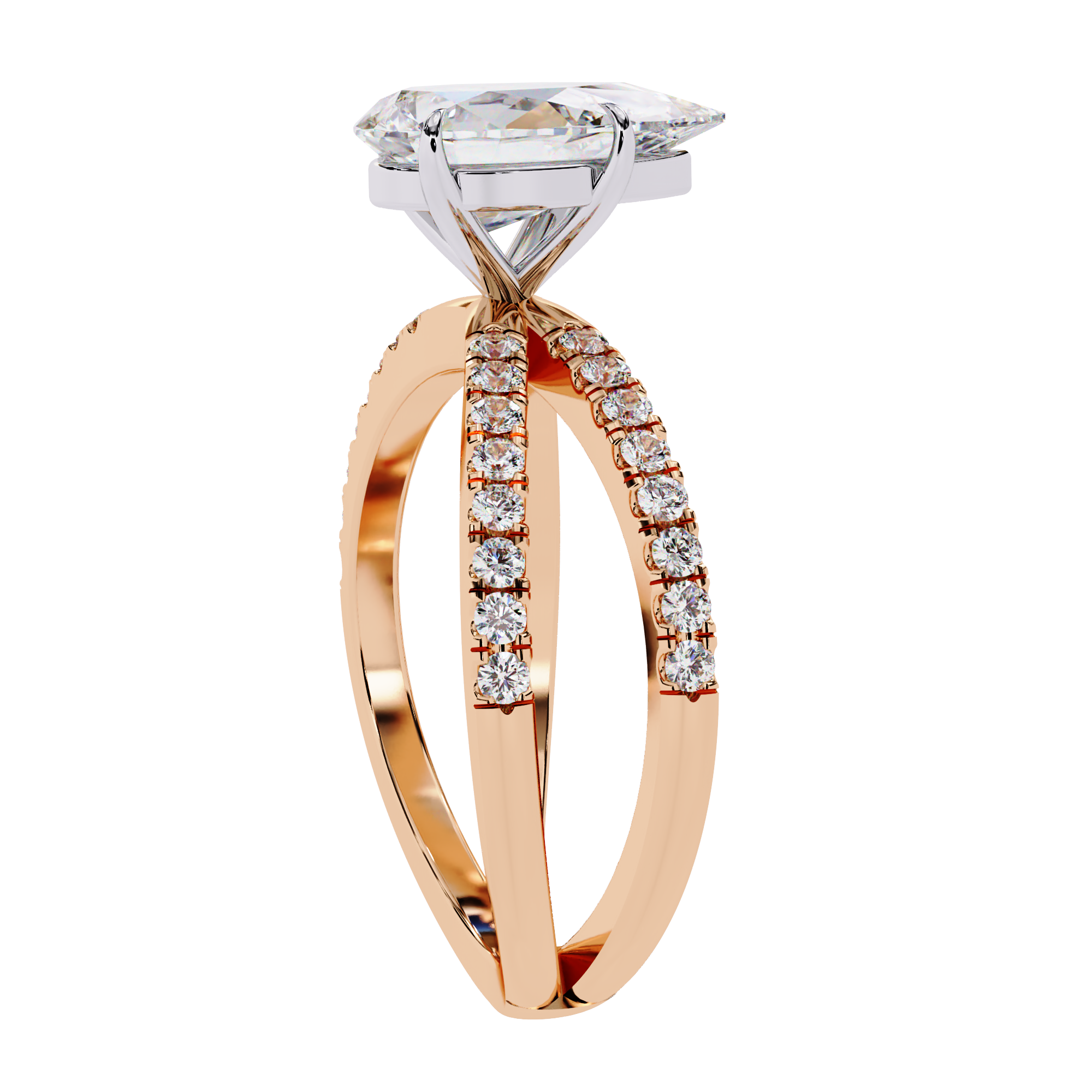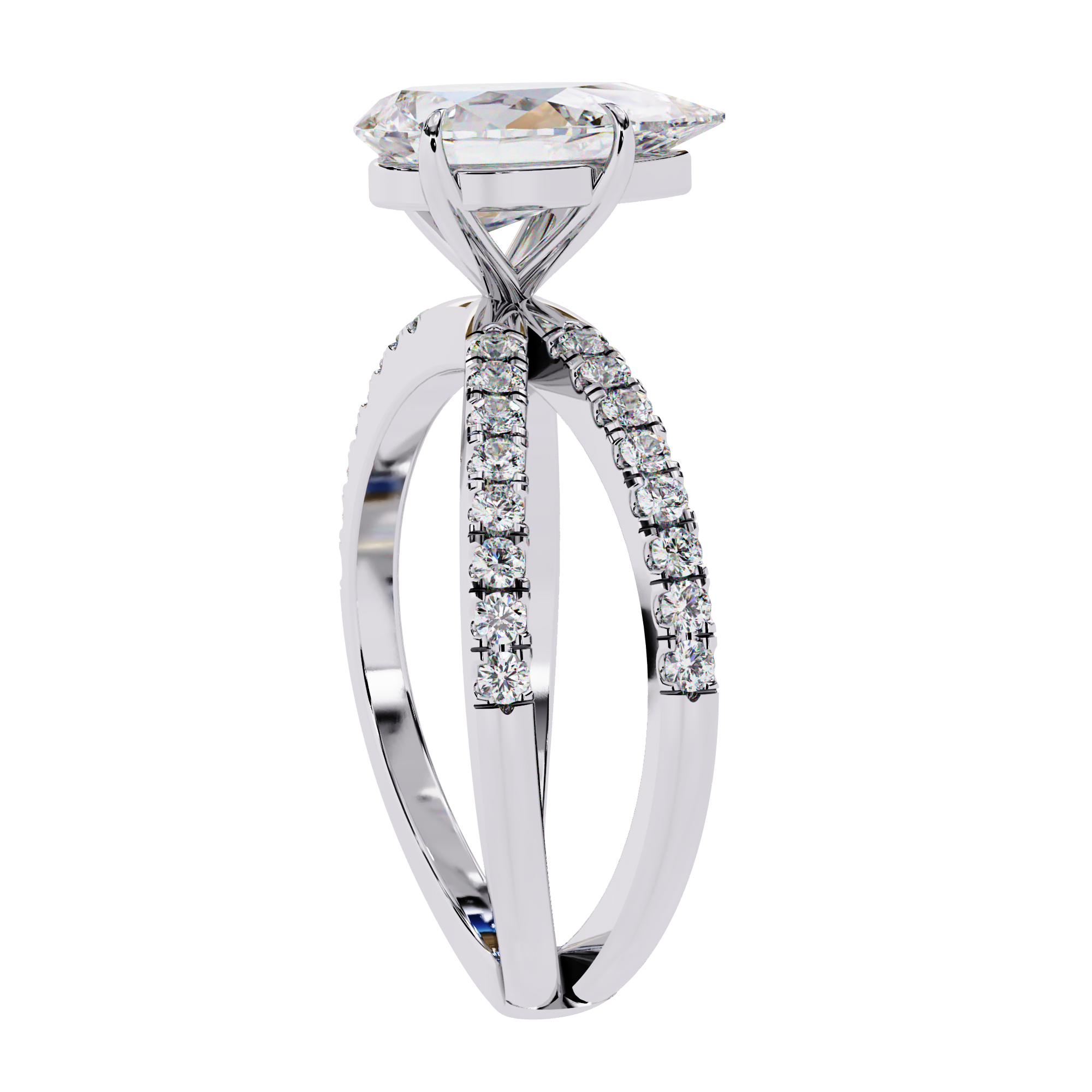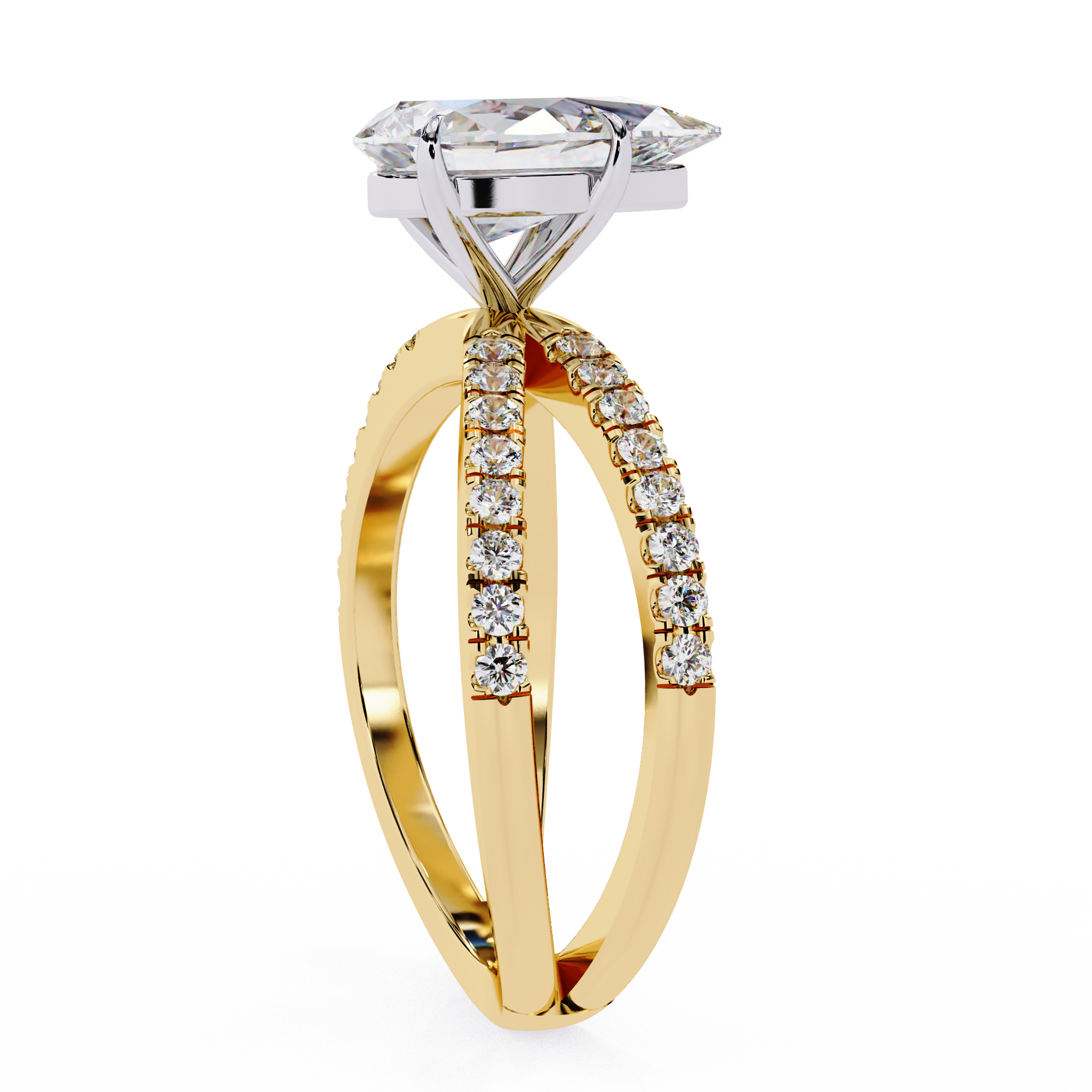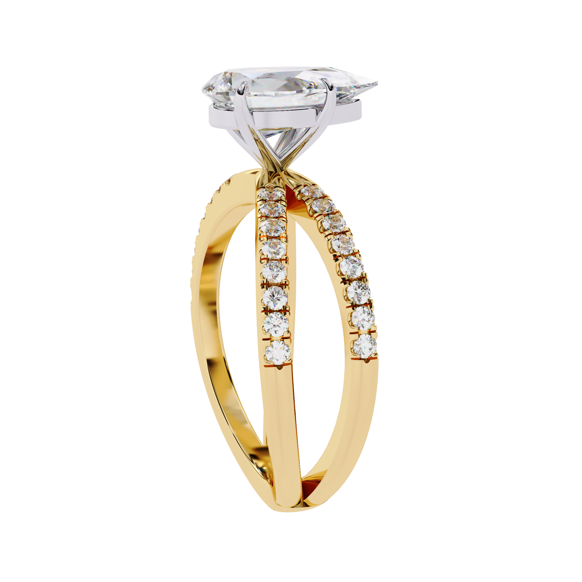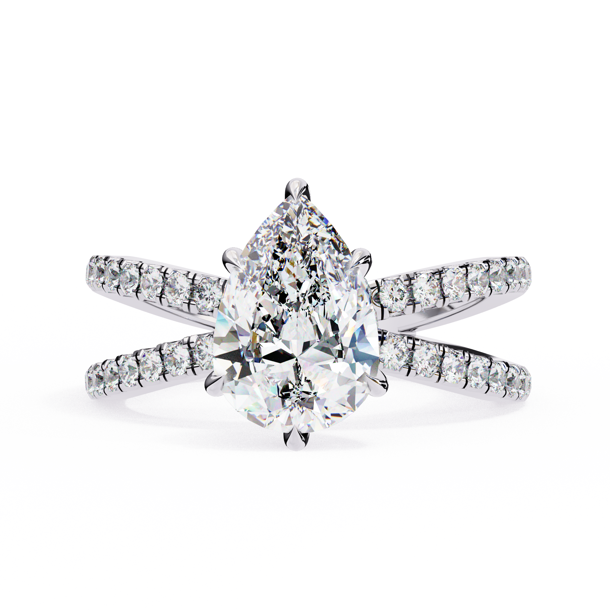 Add a touch of romantic elegance with this 14K pear shape diamond split shank engagement ring. The brilliant pear-cut center stone symbolizes love and emotion, beautifully set on a sparkling split band adorned with pavé diamonds. This luxurious design offers exceptional brilliance and a graceful silhouette, making it a stunning choice for proposals, anniversaries, or heartfelt celebrations.