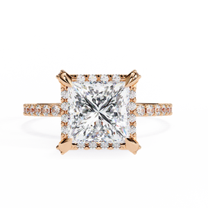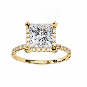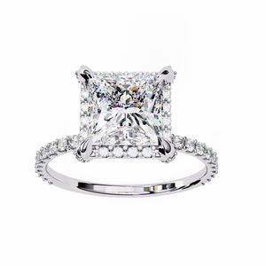 This luxurious 14K engagement ring features a stunning princess-shaped lab-grown diamond surrounded by a sparkling halo and a diamond-encrusted band. Designed to maximize brilliance from every angle, it blends timeless charm with modern sophistication a perfect symbol of everlasting love.