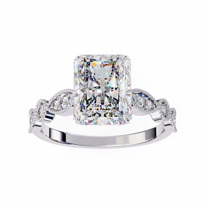 A breathtaking 14K diamond engagement ring featuring a radiant-cut center stone that dazzles with brilliance. The intricate vintage-inspired band is adorned with marquise and round diamonds, giving it a timeless yet modern charm. Perfect for brides who adore elegance, fine detailing, and handcrafted artistry. Designed for everyday comfort and everlasting sparkle.