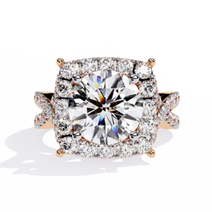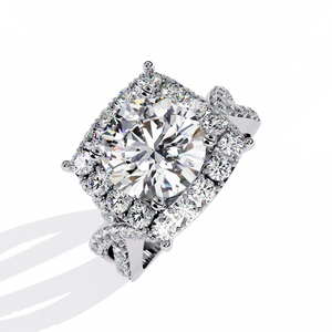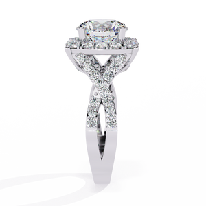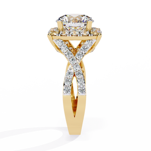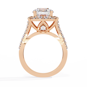 This 14K Round Diamond Double Halo Engagement Ring radiates grandeur and brilliance. The central round diamond is encircled by two layers of sparkling halos, enhancing its size and fire. The diamond-accented split shank adds extra glamour, creating a breathtaking masterpiece that symbolizes everlasting love and luxury.