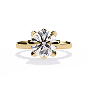 This 14K Round Diamond Lotus Solitaire Ring radiates elegance with a lotus-inspired setting that gracefully cradles the center diamond. The polished band enhances its brilliance, while delicate petal-like prongs add a romantic, nature-inspired charm. A perfect symbol of purity and everlasting love.