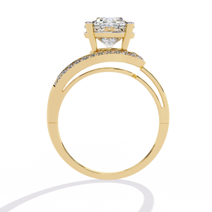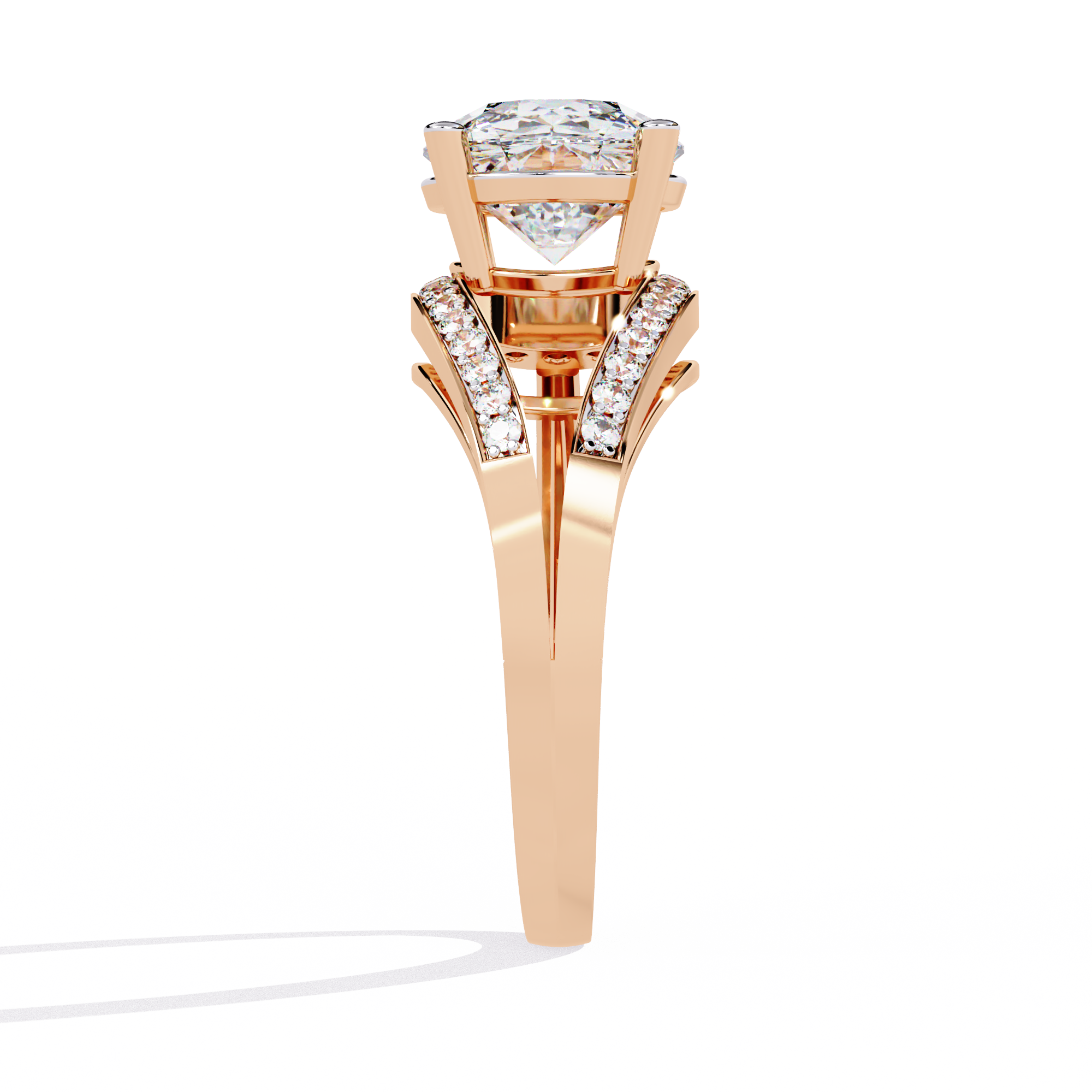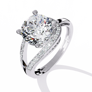 A captivating 14K diamond ring featuring a brilliant round solitaire set atop an elegant split shank band encrusted with pavé-set diamonds. Its fluid curves and radiant sparkle make it a timeless choice for those seeking a modern yet classic symbol of love.