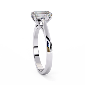 Understated sophistication meets architectural beauty in this 14K white gold emerald-cut solitaire ring. The clean lines of the emerald-cut diamond draw attention to its mirror-like facets, creating a hall-of-mirrors brilliance that’s both modern and timeless. The classic solitaire design, set in a sleek cathedral-style band, enhances the stone’s natural allure while maintaining perfect symmetry and minimalism. A perfect choice for those who appreciate refined elegance and contemporary grace.