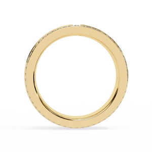 An extraordinary fusion of classic and contemporary, this 14K Gold Bezel Set Diamond Eternity Band features alternating large and small round brilliant-cut diamonds, each framed in sleek bezel settings for a modern edge. The continuous design symbolizes eternal love, while the polished gold band adds warmth and sophistication. Perfect as a statement wedding band, anniversary ring, or stackable luxury piece, this ring captures light and attention from every angle.