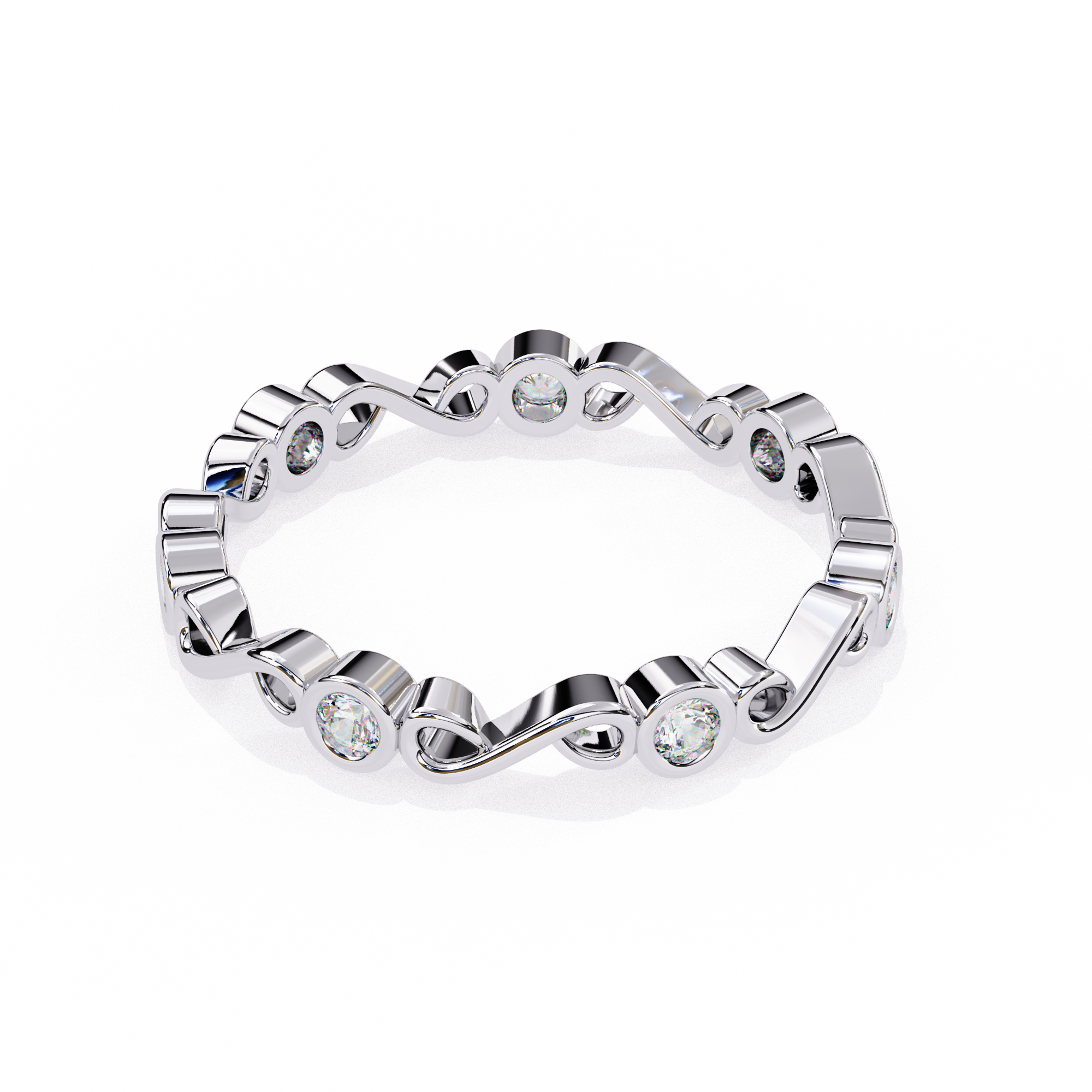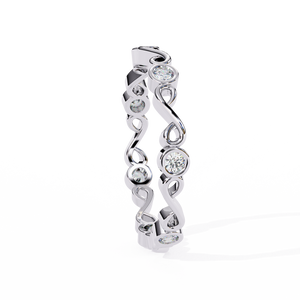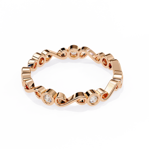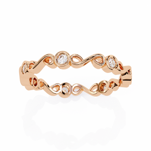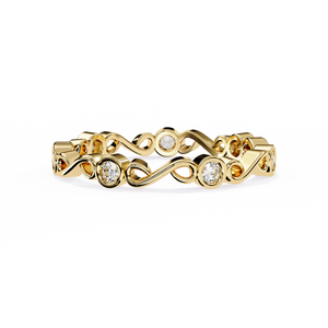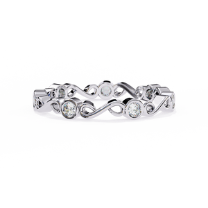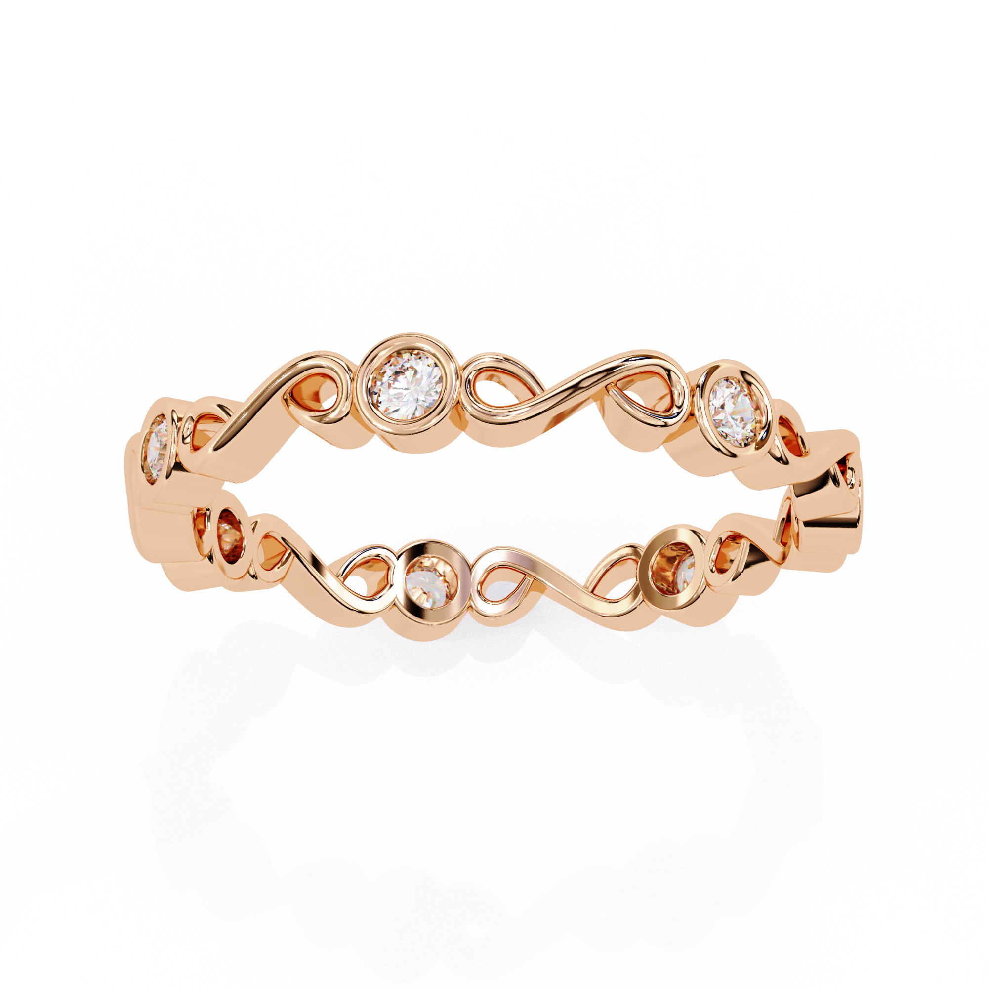 A symbol of everlasting love, this 14K infinity diamond band beautifully intertwines elegance and meaning. The continuous infinity motif is accented with round brilliant diamonds set in smooth bezel frames, creating a seamless flow of sparkle around the finger. Perfect as a wedding band, anniversary ring, or stackable design, this piece captures the essence of timeless romance and modern craftsmanship.