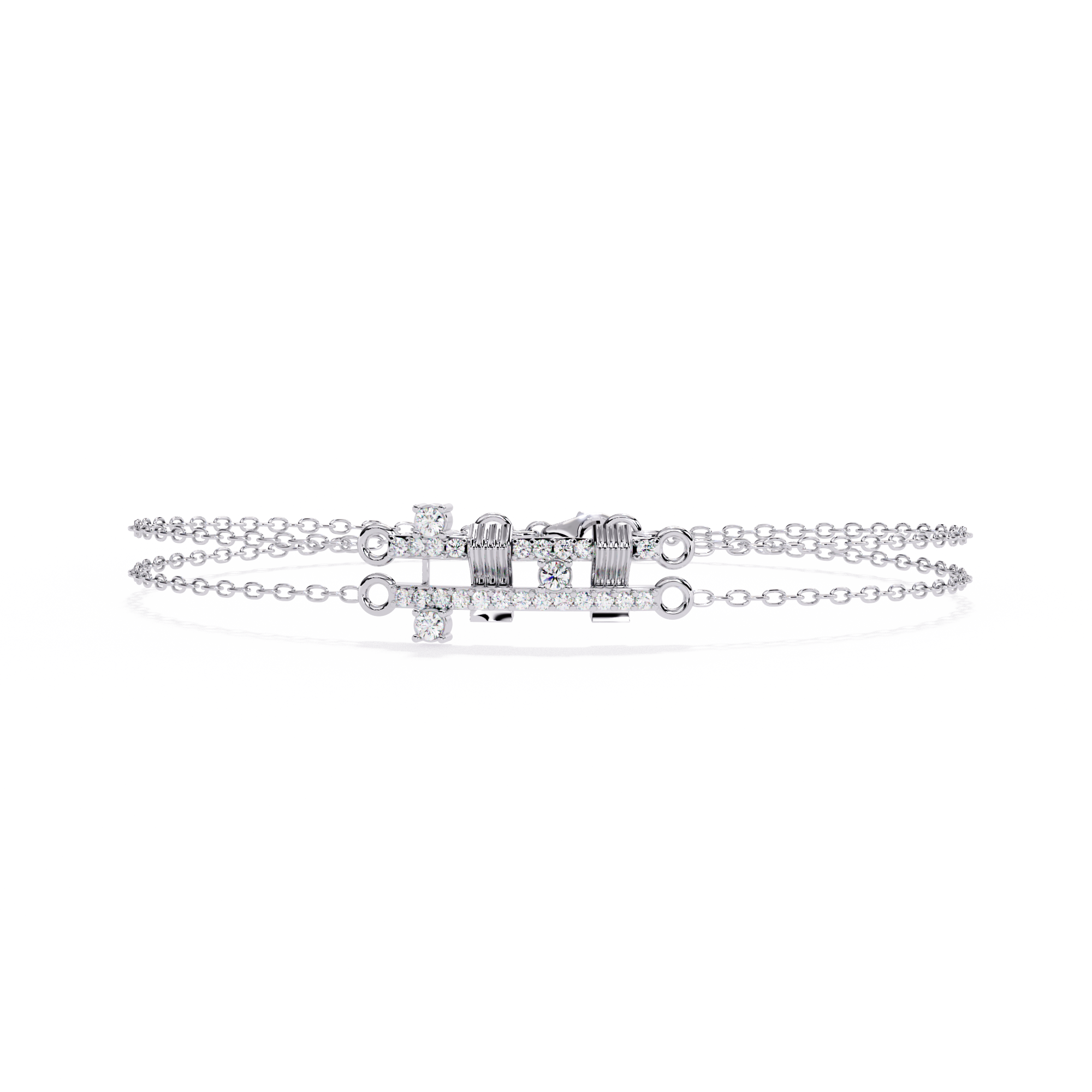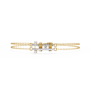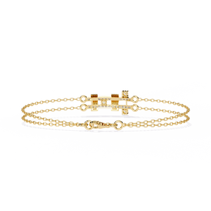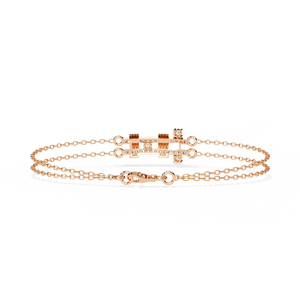 A sleek geometric bracelet featuring a double-chain design with a central diamond-accented motif. The structured pattern and fine craftsmanship make it a modern yet timeless piece for any occasion.