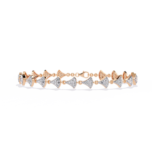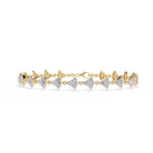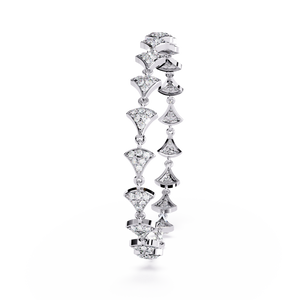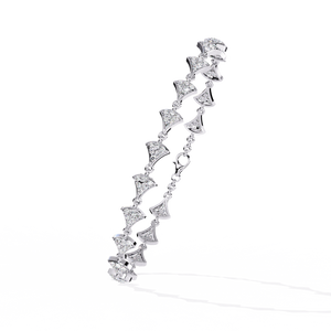 An exquisite bracelet featuring fan-shaped diamond clusters linked gracefully together. Its refined symmetry and radiant sparkle add an elegant statement to both modern and traditional looks.