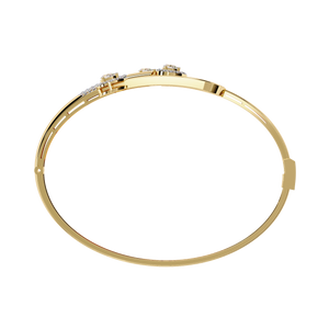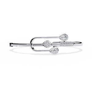 This elegant 14K gold bracelet features a modern open-ended design adorned with pear-shaped diamond drops and a pavé accent. The sleek linear structure exudes sophistication and charm, making it the perfect statement piece for refined evening wear or special occasions.