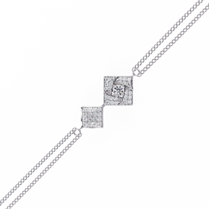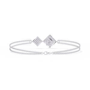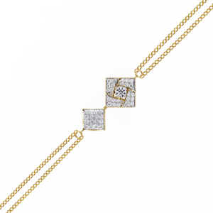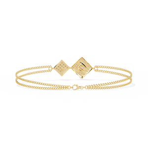 Crafted in 14K gold, this flexi bracelet features two square diamond clusters joined in a seamless, geometric design. The double-chain detail adds an elegant touch, making it perfect for refined, modern styling with a hint of sparkle.