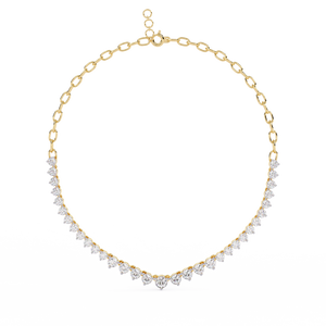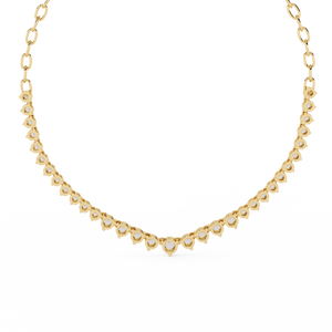 This 14K gold necklace features a seamless cascade of pear-shaped diamonds arranged in an elegant gradient. The soft curve and adjustable link chain offer both brilliance and comfort, making it a radiant choice for weddings or refined evening wear.