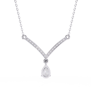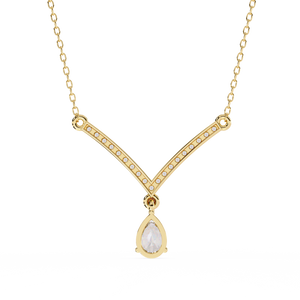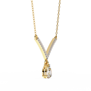 This 14K pear diamond V shape necklace features a sleek pavé diamond V bar with a pear-shaped diamond drop. Designed to draw attention with its graceful symmetry and radiant sparkle, it’s the perfect choice for timeless sophistication.