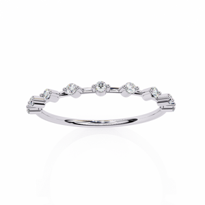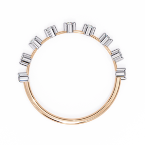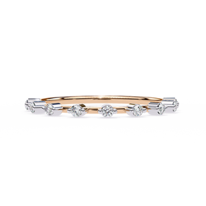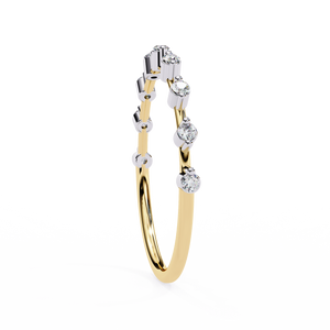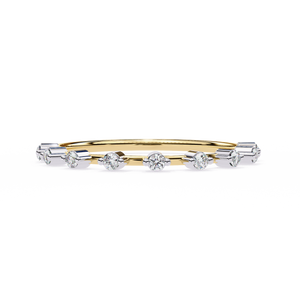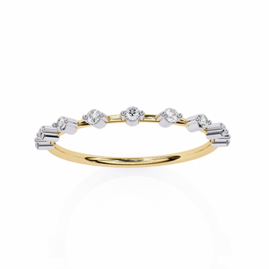 Delicately refined yet strikingly radiant, this 14K Floating Diamond Band features a sleek row of round brilliant-cut diamonds suspended in elegant bezels. The open two-tone design creates a captivating contrast, enhancing each diamond’s brilliance while maintaining a lightweight, airy aesthetic. Perfect as a stacking ring, wedding band, or everyday luxury piece, this ring exudes effortless sophistication with a modern twist.