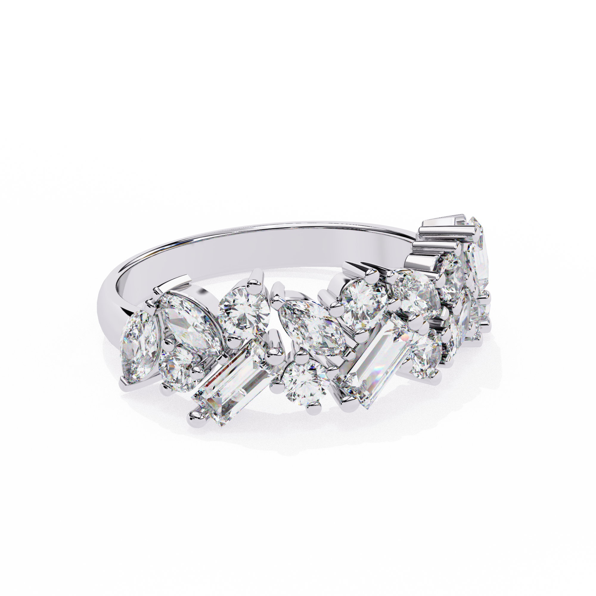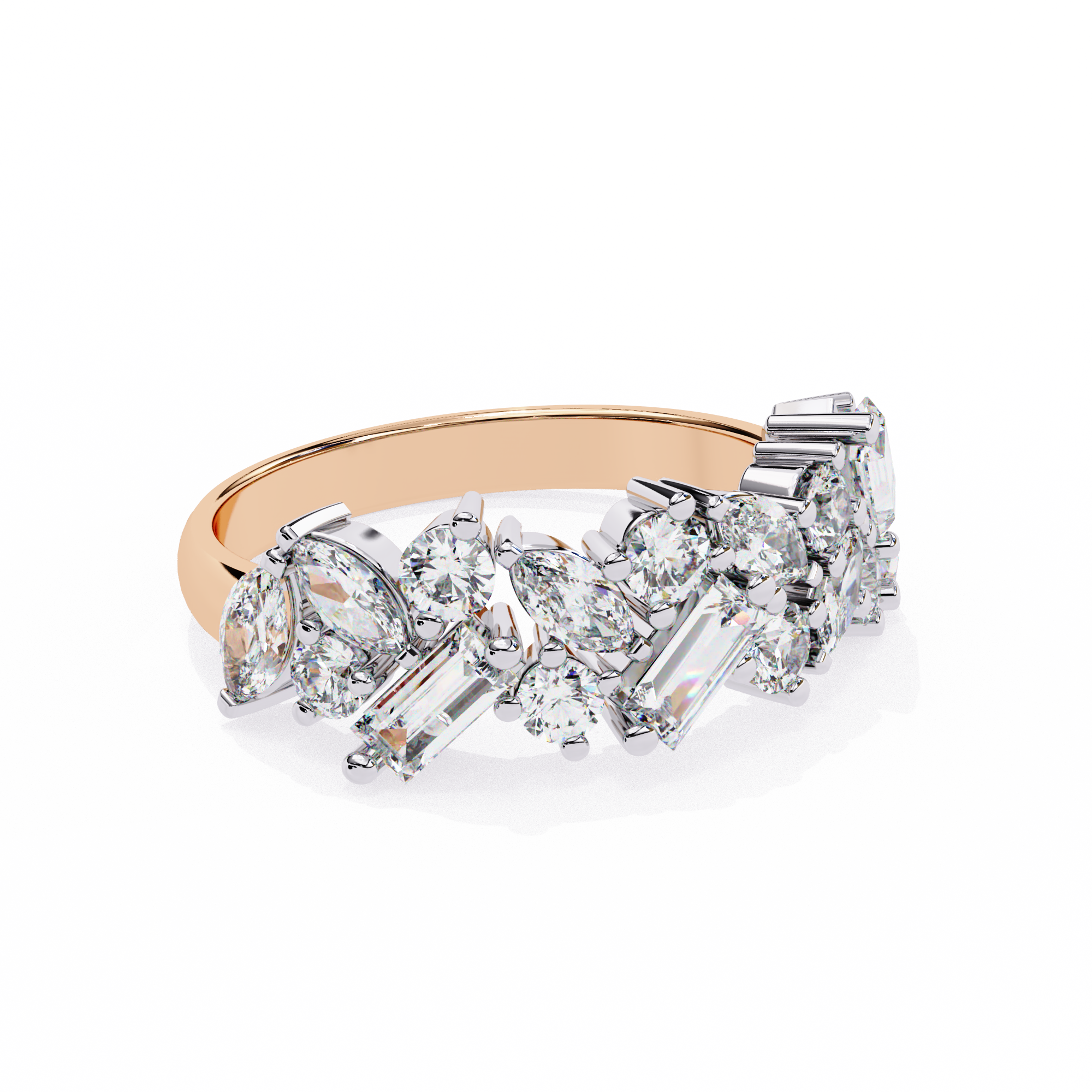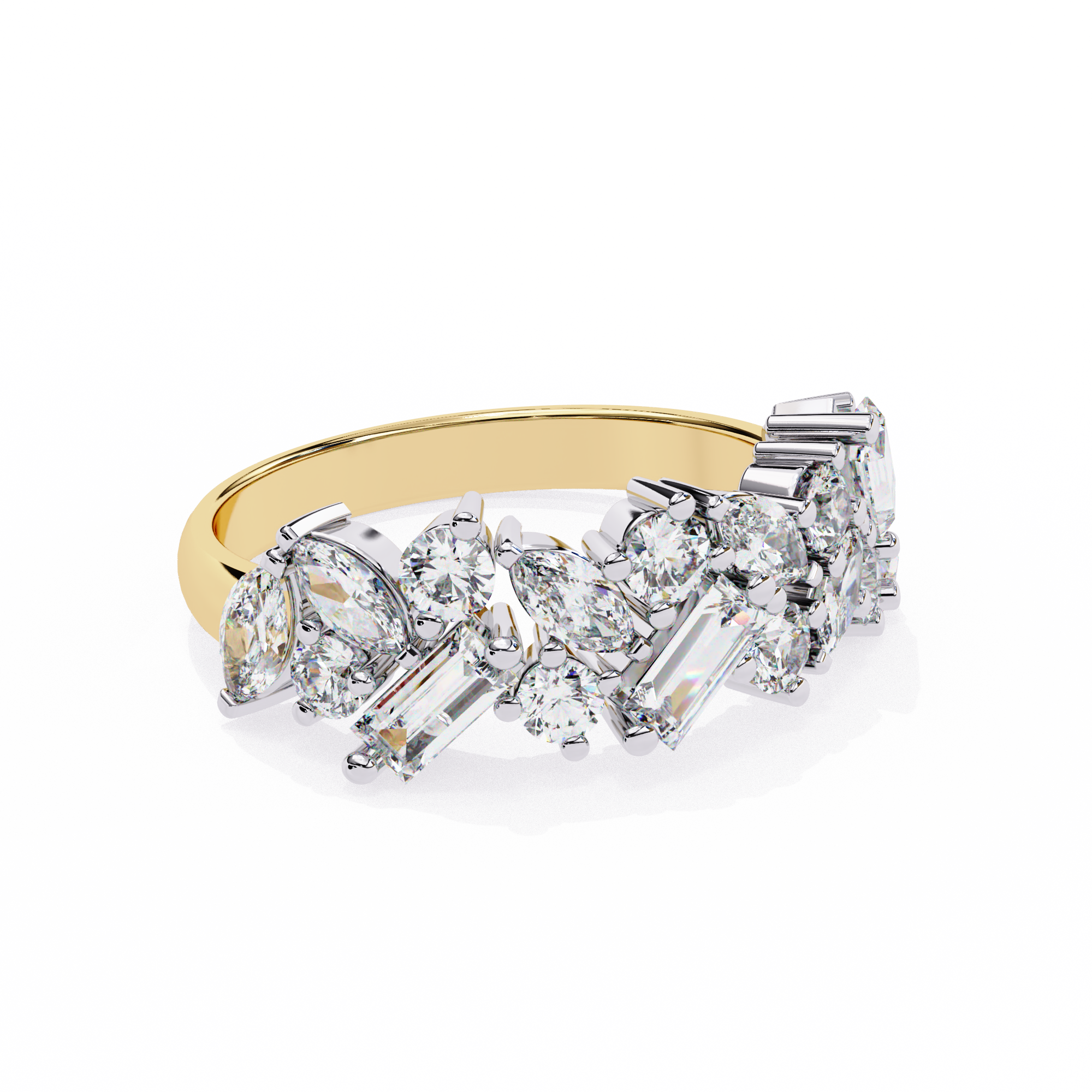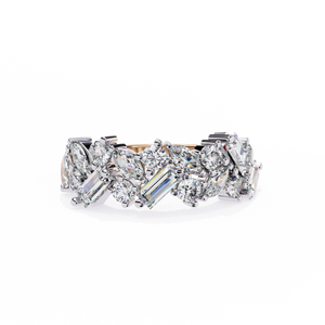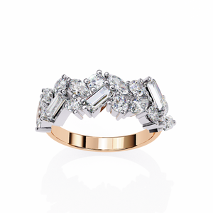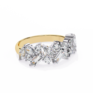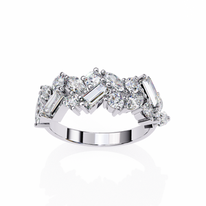 This 14K Mixed Shape Diamond Band beautifully balances modern geometry with timeless brilliance. Featuring alternating oval and baguette-cut diamonds, each stone is meticulously set to create a wave of sparkle and sophistication. The clean, lustrous enhances the clarity and fire of each diamond, making this ring a stunning choice for both daily wear and special occasions. Perfect as a statement band, wedding ring, or stacking piece, it radiates luxury from every angle.