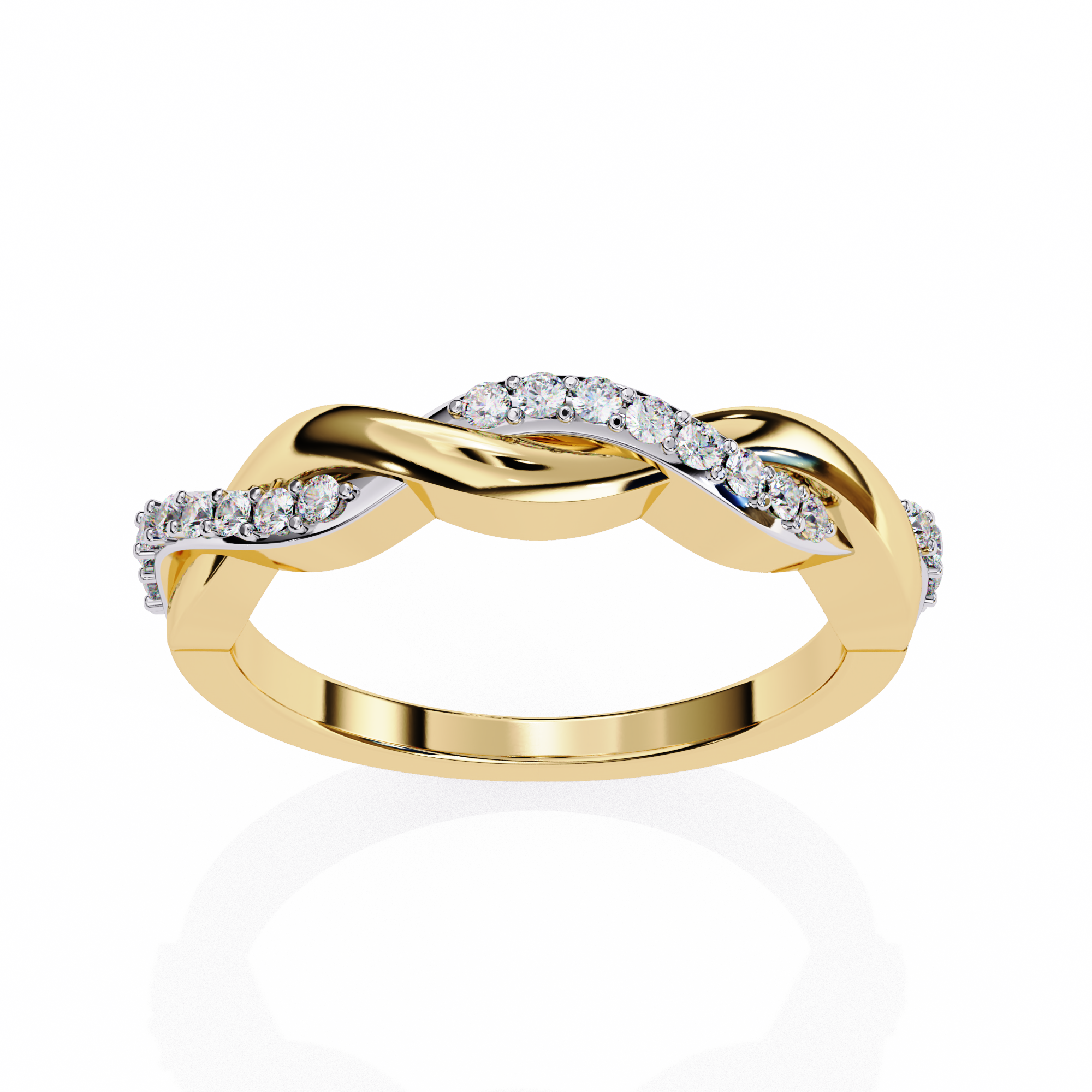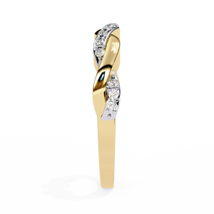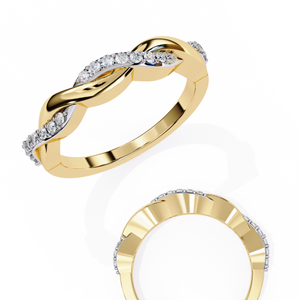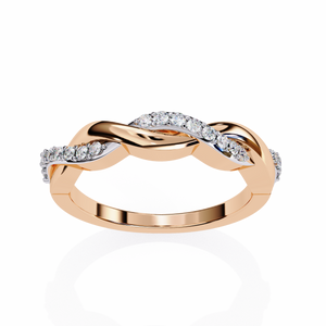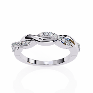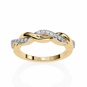 This 14K Twisted Diamond Band beautifully symbolizes unity and eternal love with its graceful intertwined design. One strand of high-polish wraps seamlessly with a strand of sparkling round brilliant diamonds, creating a fluid, romantic pattern that catches the light from every angle. Elegant yet versatile, this ring is perfect as a wedding band, anniversary ring, or stacking piece for everyday wear.