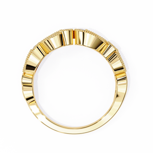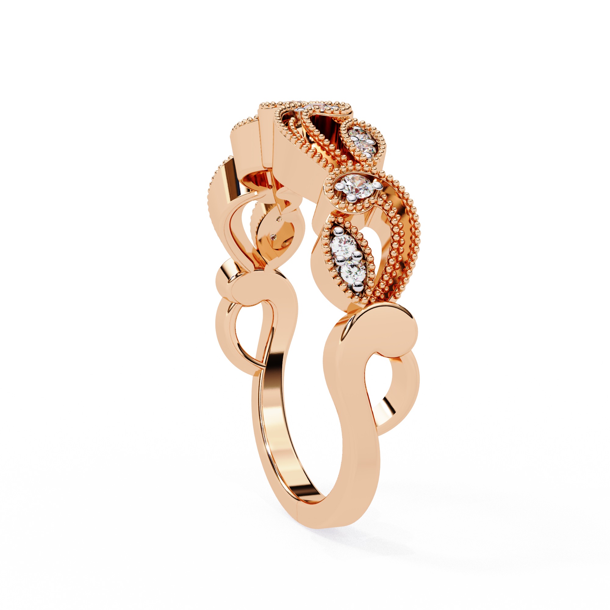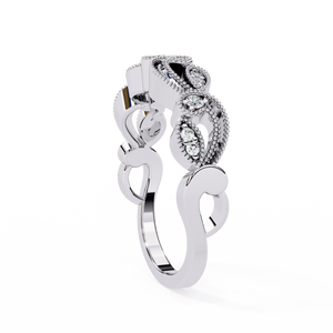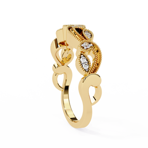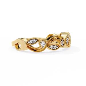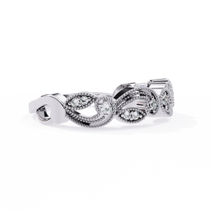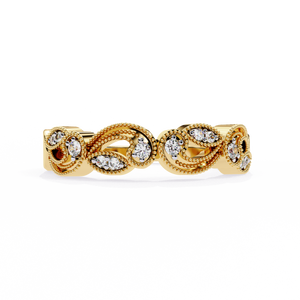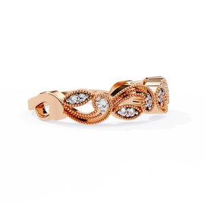 Inspired by nature’s grace, this 14K leaf diamond band showcases intricate vine and leaf motifs set with sparkling round brilliant diamonds. The delicate milgrain edges add a touch of vintage charm, enhancing the artistry and texture of the design. Perfect as a wedding band, anniversary ring, or standalone statement piece, this ring symbolizes eternal elegance and natural beauty.