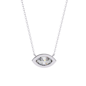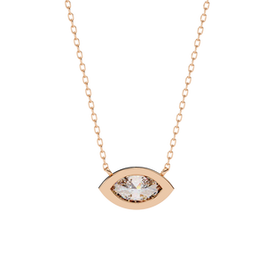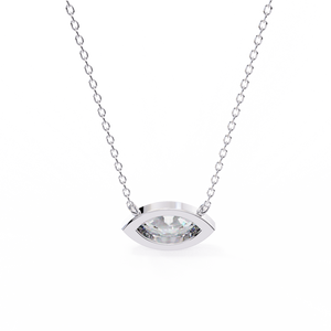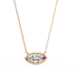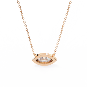 Crafted for refined simplicity, this 14K marquise diamond pendant radiates brilliance from its bezel setting. Its balanced proportions and fluid form make it a perfect blend of minimalism and luxury.