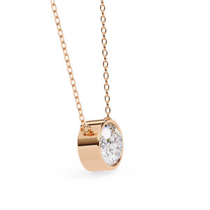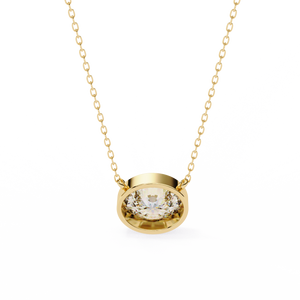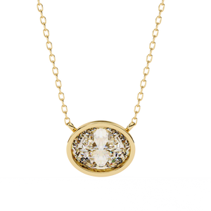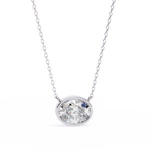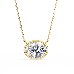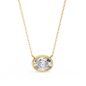 Crafted with precision, this 14K oval diamond pendant captures the beauty of simplicity. The bezel-set diamond rests seamlessly on a delicate chain, reflecting light with every movement for an effortlessly