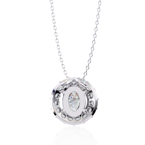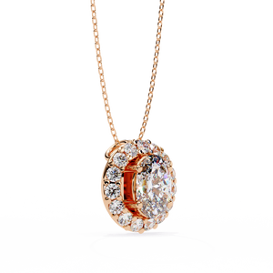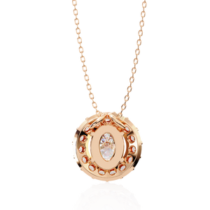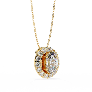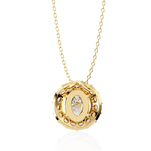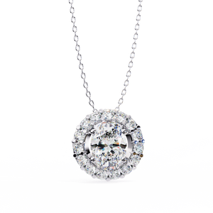 This 14K pendant features a dazzling oval center diamond encircled by a brilliant halo of smaller diamonds. The radiant cluster design enhances sparkle, creating a timeless piece of luxury and elegance for every occasion.