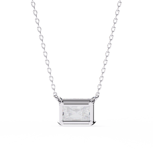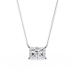 A radiant-cut diamond takes center stage in this sleek 14K pendant. Designed for versatility, its crisp edges and bright facets make it a stunning expression of modern luxury.
