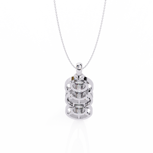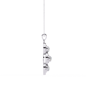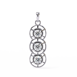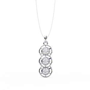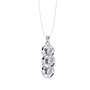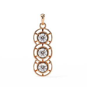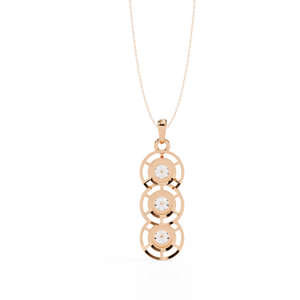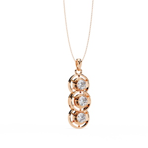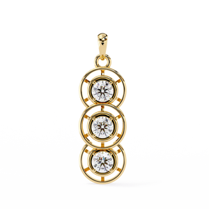 This elegant 14K pendant features three round diamonds set in a cascading drop design. Each diamond is framed with open circular detailing, creating a modern and refined sparkle that symbolizes timeless grace.