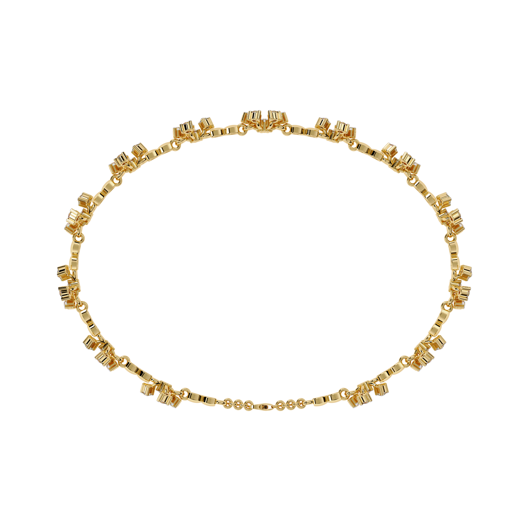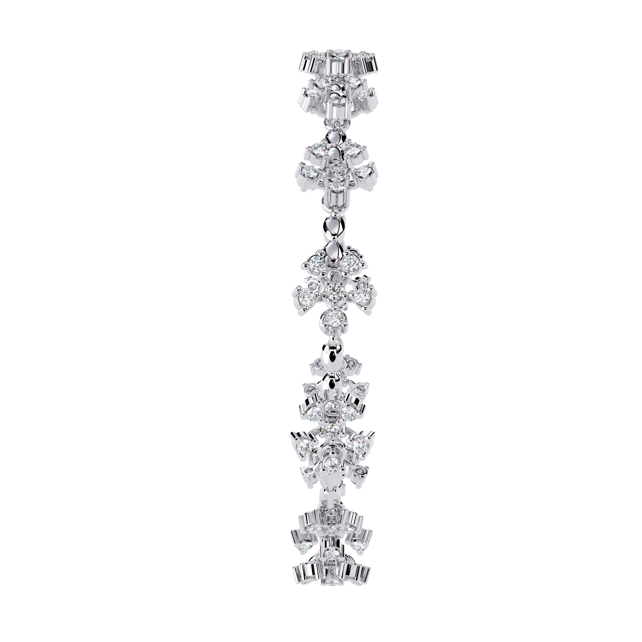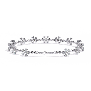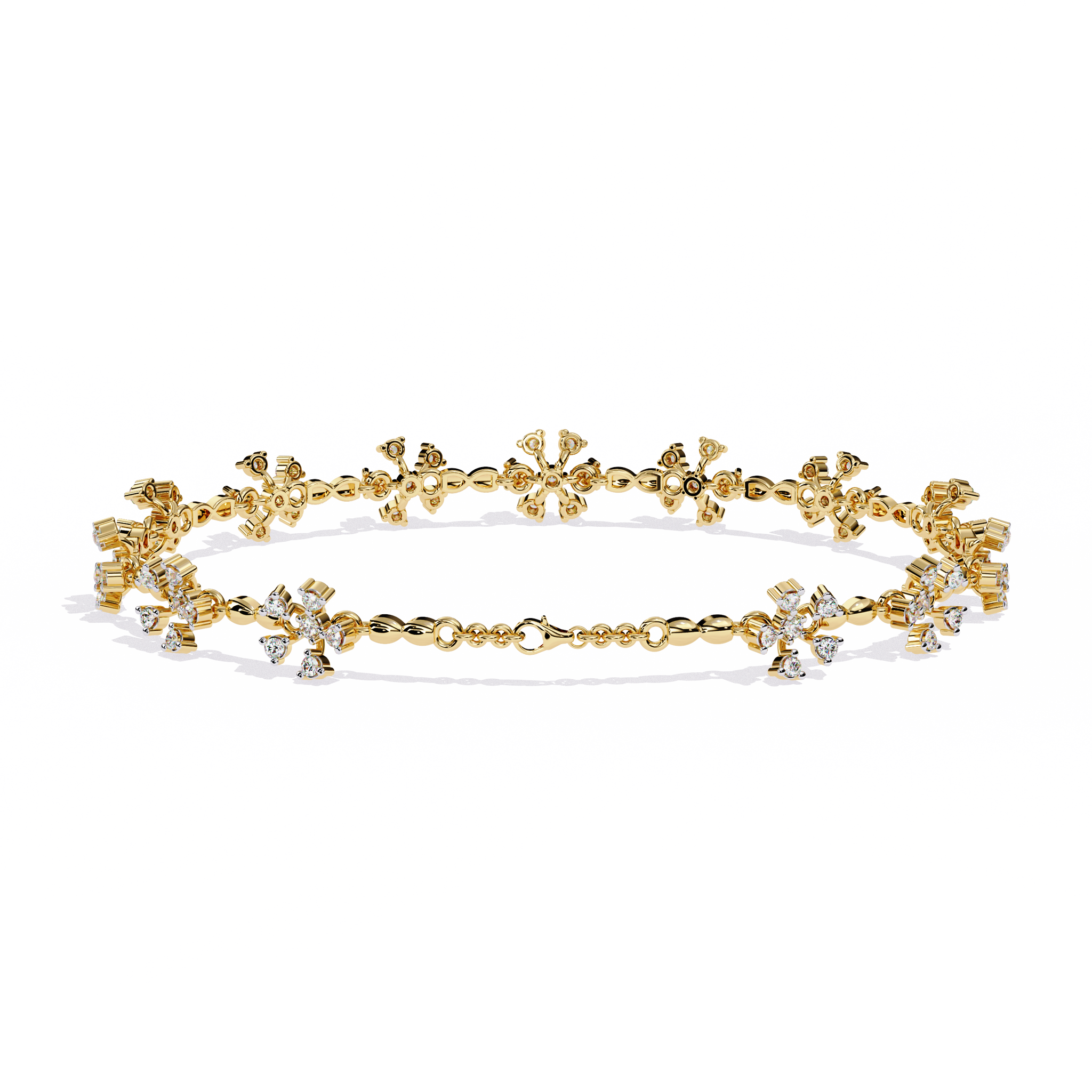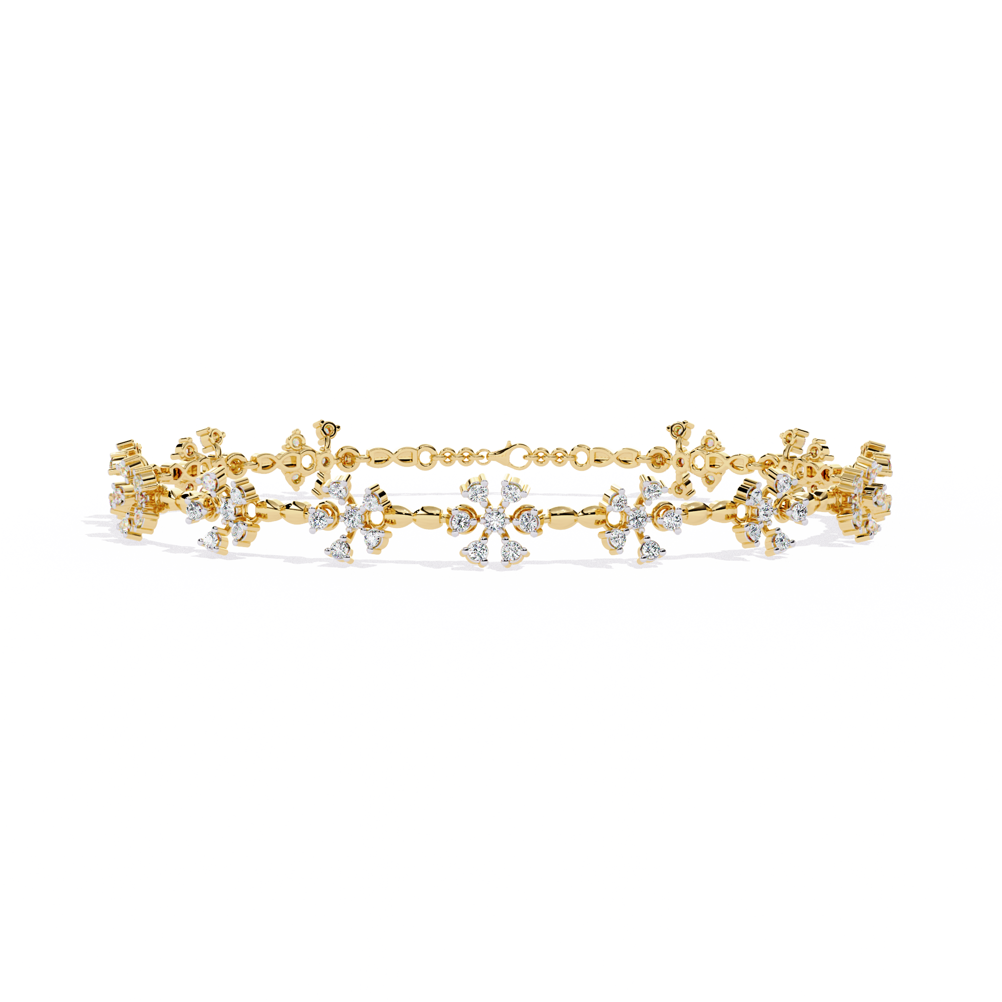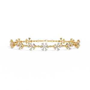 This exquisite 14K gold bracelet features delicate floral clusters of round diamonds, forming a graceful chain of shimmering blossoms. Each flower sparkles with intricate brilliance, adding a romantic charm to any outfit. A timeless expression of femininity and fine craftsmanship.