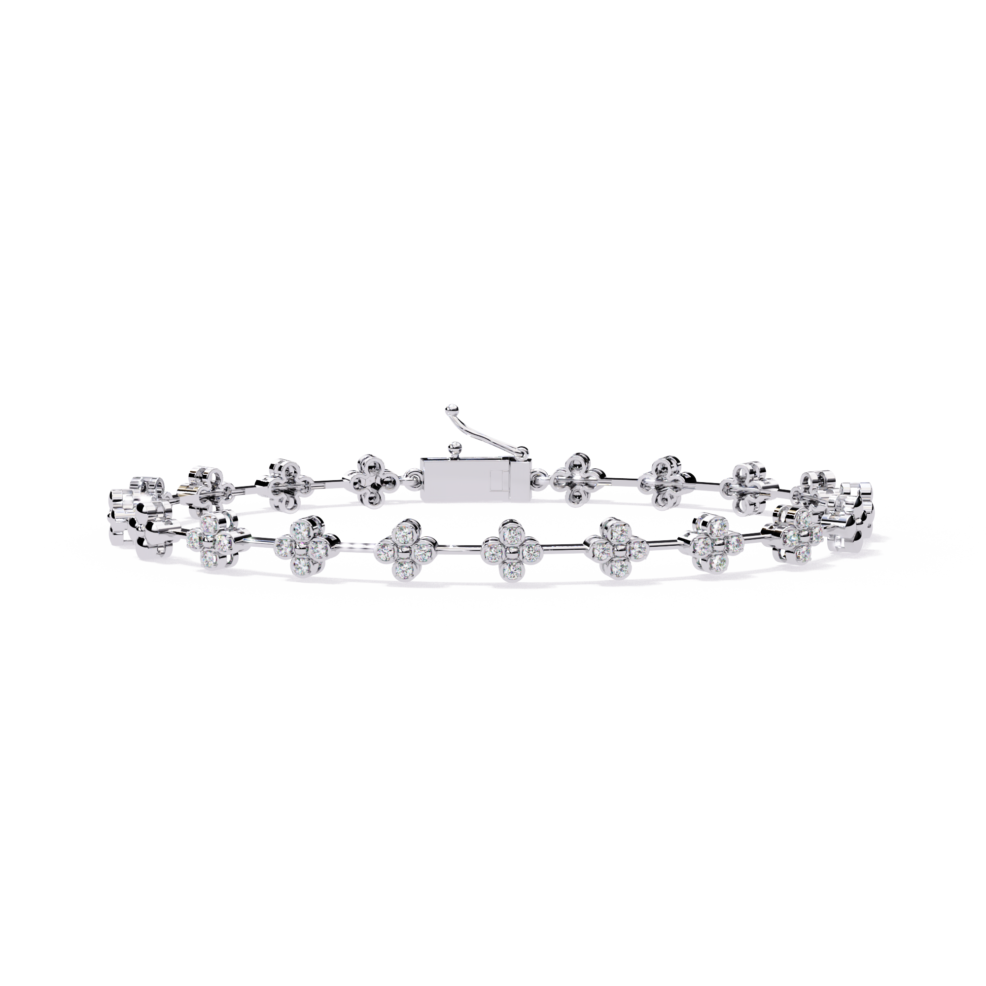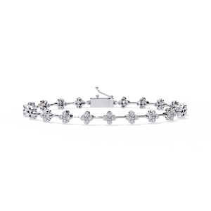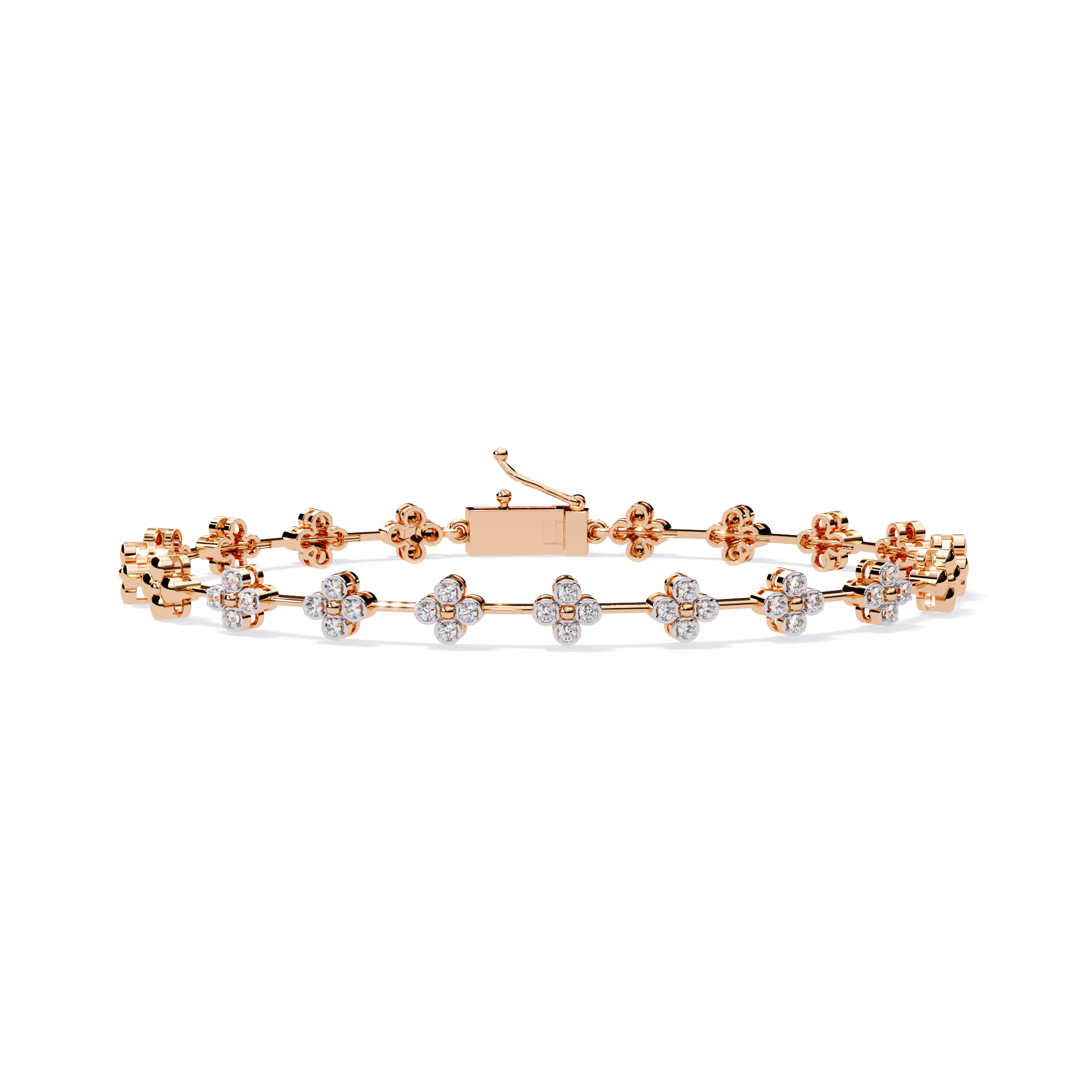 A graceful 14K gold bracelet adorned with diamond-studded floral motifs, creating a delicate yet radiant look. Each flower is intricately crafted to add a feminine charm, making it perfect for both daily wear and special occasions.