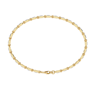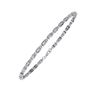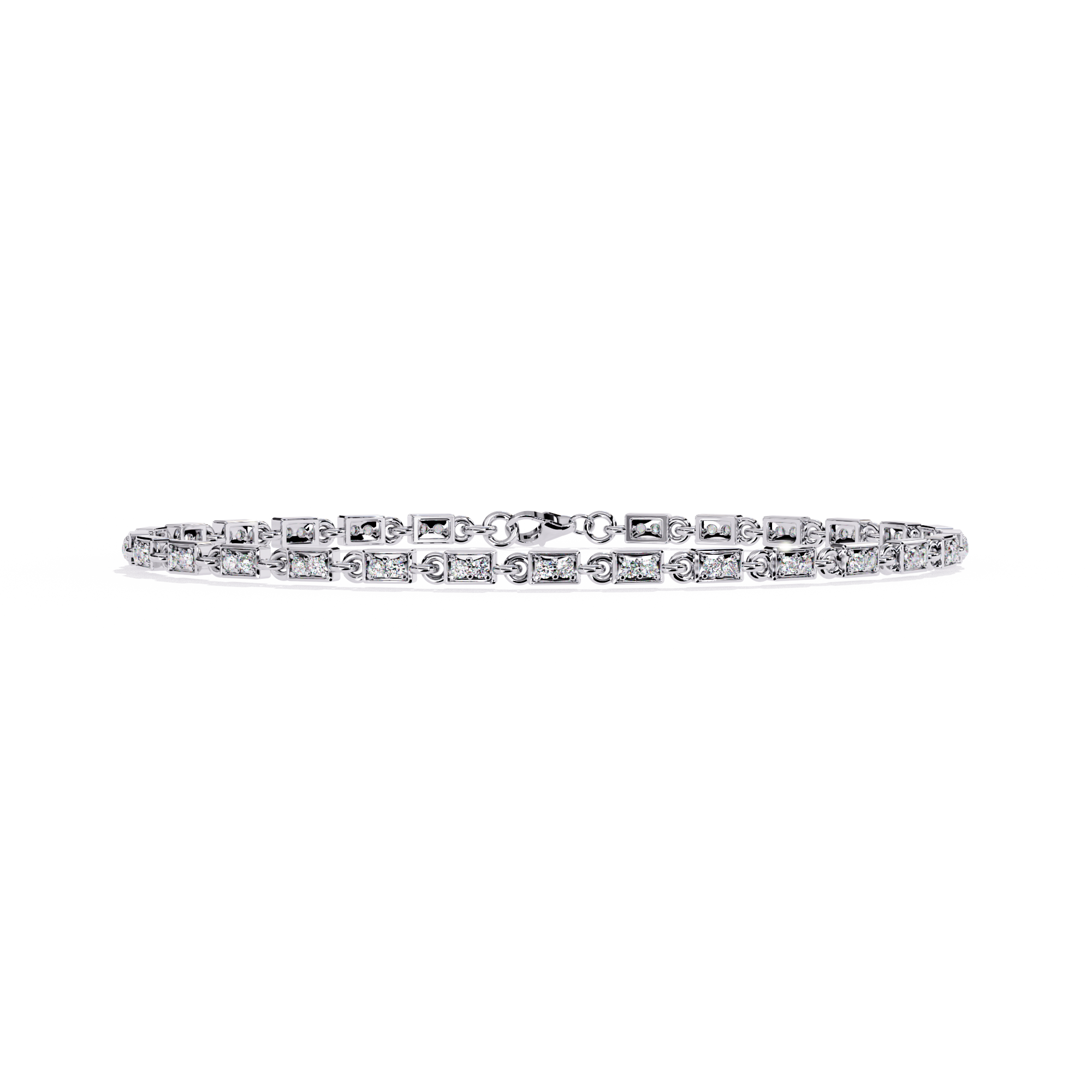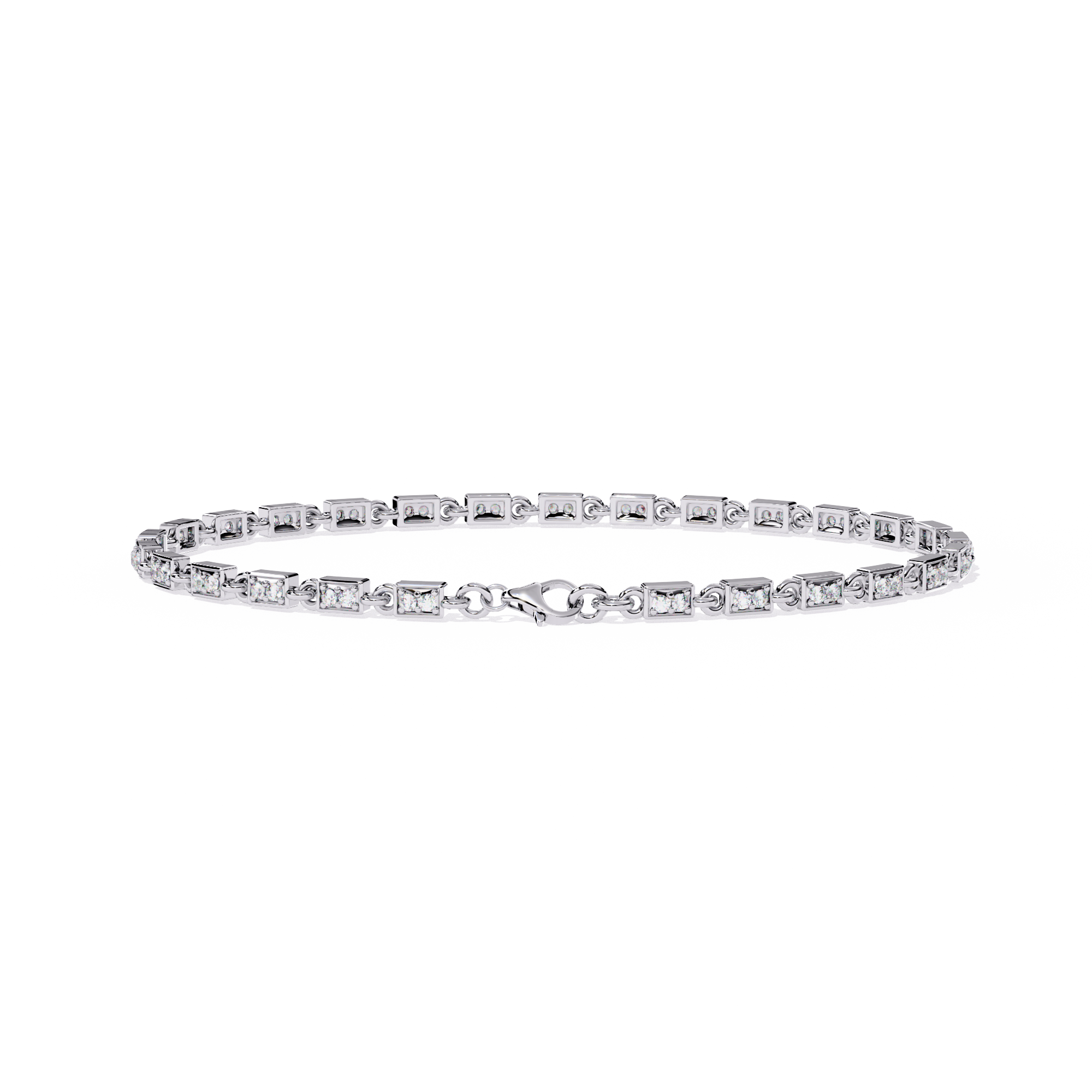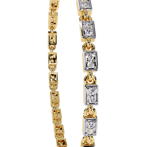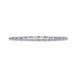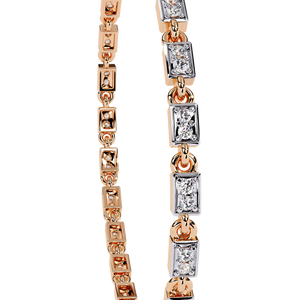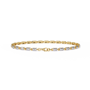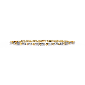 This sleek 14K gold bracelet features a geometric pattern of rectangular diamond settings, each meticulously framed to enhance its brilliance. The linear arrangement delivers a clean, modern aesthetic while maintaining timeless appeal. Ideal for those who appreciate symmetry and understated luxury in everyday elegance.