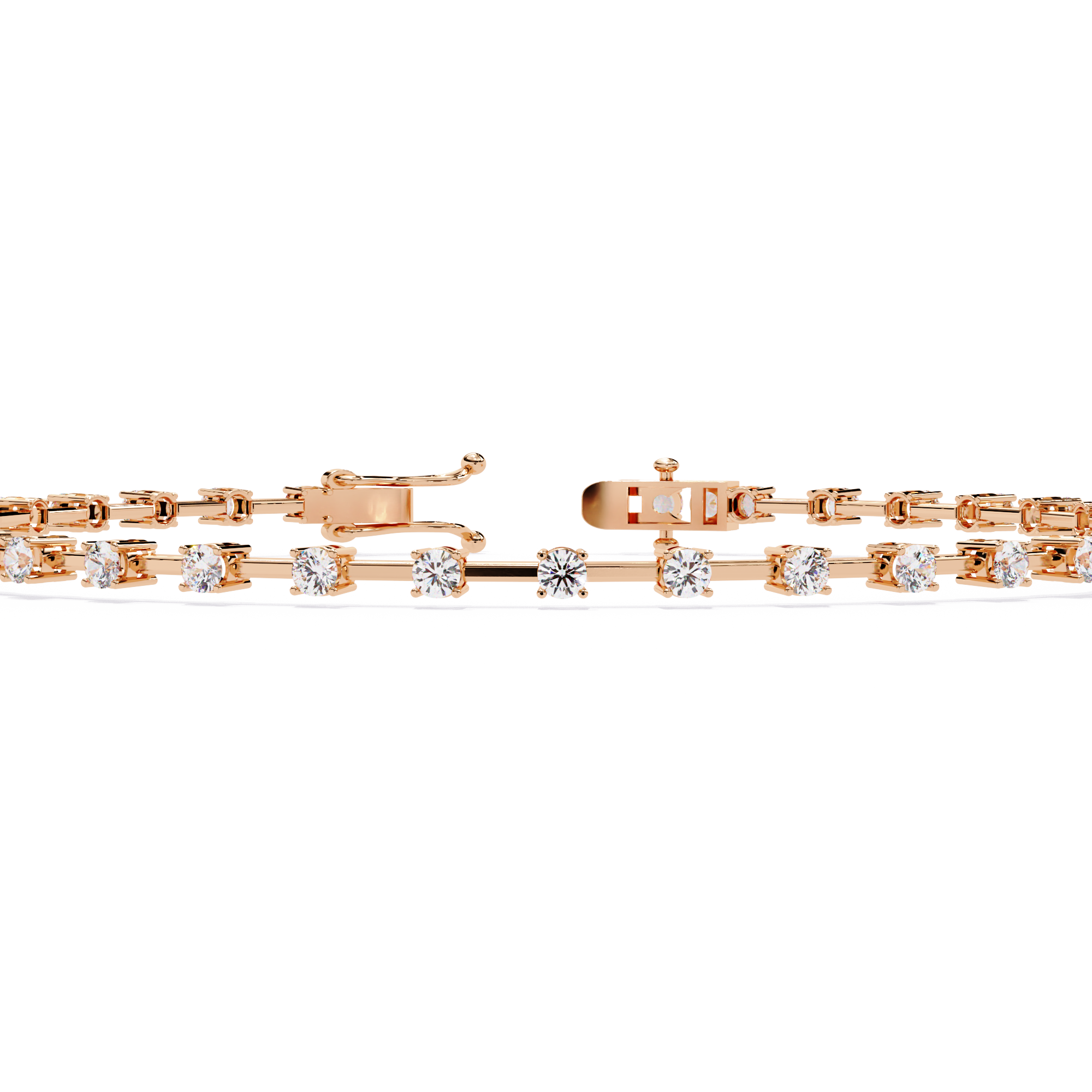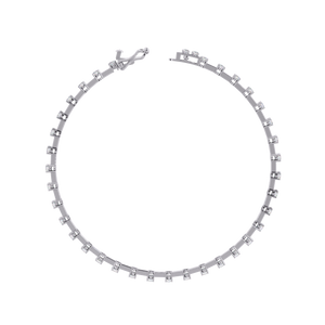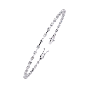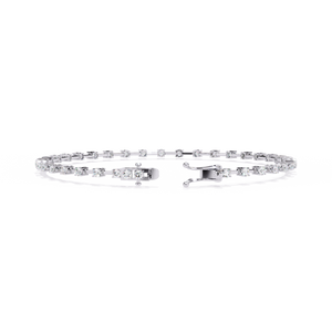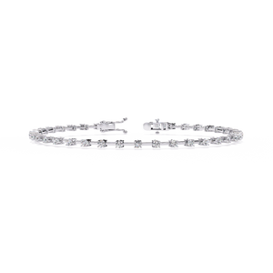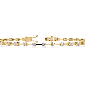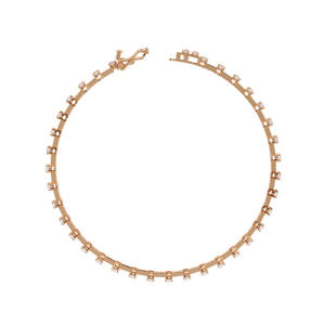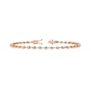 A delicate bracelet featuring evenly spaced round diamonds on a slim gold bar setting. Its refined design blends modern minimalism with classic elegance, perfect for everyday wear or stacking with other bracelets.