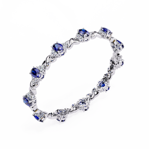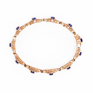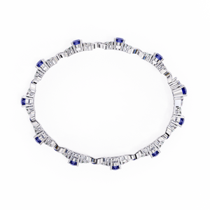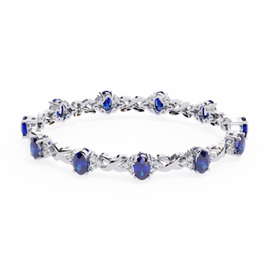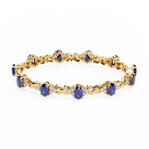 Alternating links of deep oval sapphires and sparkling round diamonds create a breathtaking symphony of color and brilliance. The intertwined 14K setting adds a touch of sophistication, making it a timeless bracelet for special occasions or refined everyday wear.