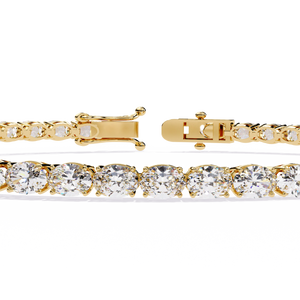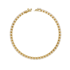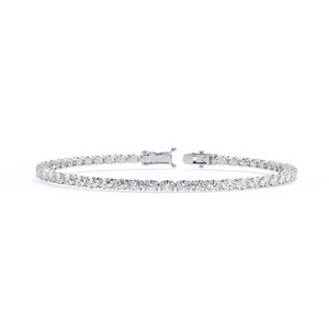 A timeless 14K tennis bracelet featuring round diamonds set in perfect symmetry. Its elegant design captures radiant brilliance, making it a refined statement piece for every occasion.