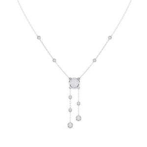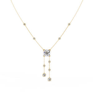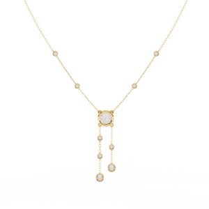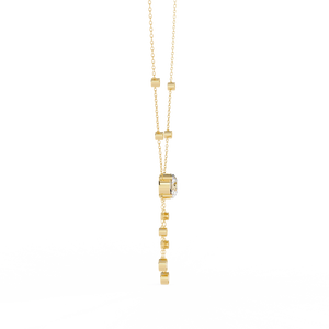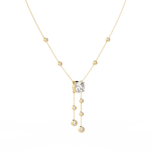 This 14K necklace features bezel-set diamonds cascading from a central round stone. With delicate side accents along the chain, it adds timeless sparkle and graceful movement a perfect blend of elegance and modern simplicity.