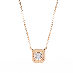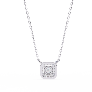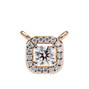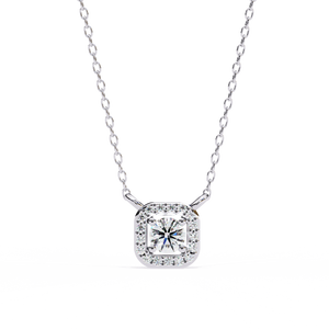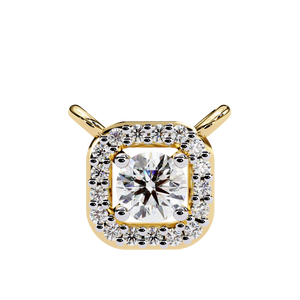 This 14K pendant features a dazzling round diamond framed by a cushion-shaped halo of smaller stones. The soft square silhouette adds depth and brilliance, creating a refined statement of timeless luxury and grace.