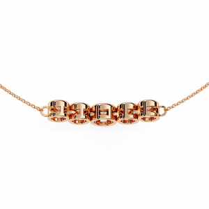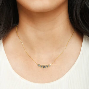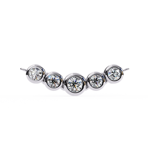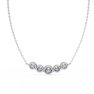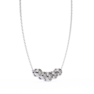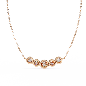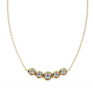 This elegant 14K pendant features a row of round brilliant diamonds set in smooth bezel frames. The graceful curve adds a modern, refined touch perfect for layering or as a minimal everyday statement piece.