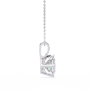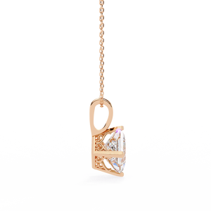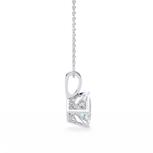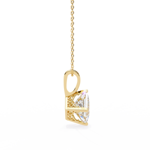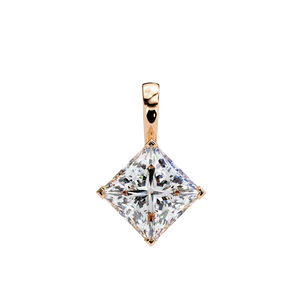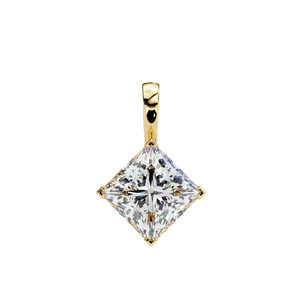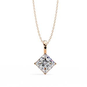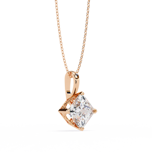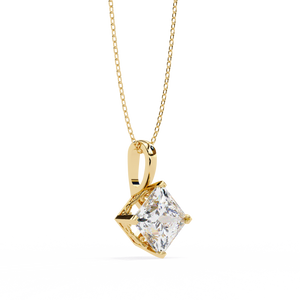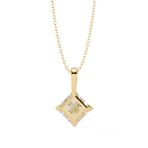 A 14K solitaire pendant featuring a sharp-edged princess diamond, secured by four fine prongs. Its classic beauty makes it ideal for both daily wear and special occasions.