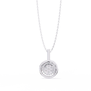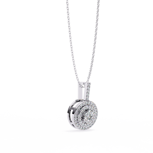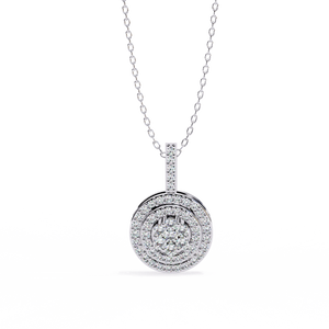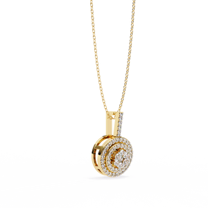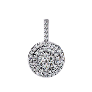 This exquisite 14K pendant features a cluster of round diamonds surrounded by two sparkling halos. With its radiant layers of brilliance, it captures attention from every angle a true statement of timeless elegance.