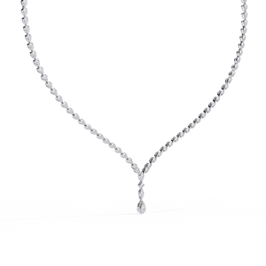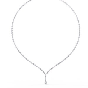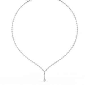 This exquisite 14K gold necklace showcases a seamless line of round diamonds that gracefully lead to a captivating pear-shaped drop. Its refined symmetry and delicate brilliance make it an elegant statement for both formal occasions and timeless luxury wear.