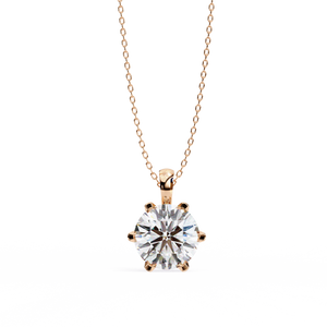Featuring a round-cut diamond in a 6-prong 14K design, this pendant blends enduring beauty with a strong, sophisticated structure. Perfect for everyday elegance.
