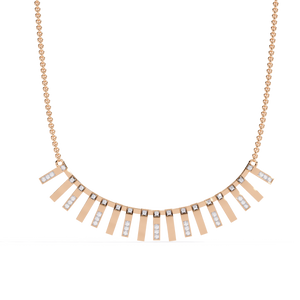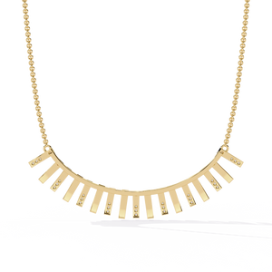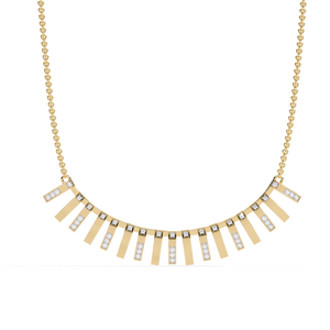 A contemporary 14K gold necklace featuring vertical bar links, each adorned with shimmering round diamonds that create a radiant cascading effect. The bold geometric design adds a refined touch, perfect for turning everyday elegance into a statement of style.