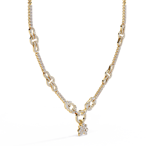 This 14K gold Riviera necklace radiates timeless glamour with its perfectly aligned round diamonds. Intricate diamond links and a brilliant centerpiece create an elegant, seamless flow — a masterpiece of refinement for grand occasions or luxurious evenings.