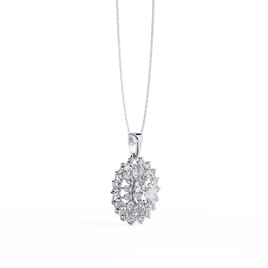 Reverra 14K Sunburst Halo Diamond Pendant Necklace, CTTW-3.41