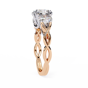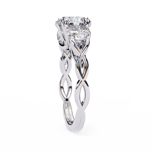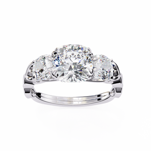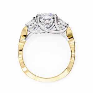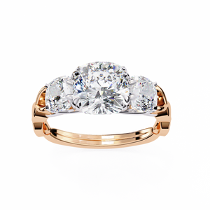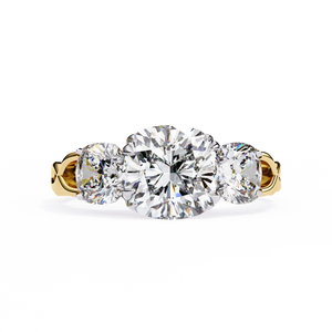 This 14K Cushion Cut Three-Stone Engagement Ring captures everlasting love in a timeless design. The captivating cushion-cut center diamond is flanked by two matching side stones, symbolizing your shared past, present, and future. Crafted with a sleek, polished band and a secure trellis setting, this ring combines brilliance, balance, and comfort. Perfect for the bride who cherishes classic elegance with a hint of modern radiance.
