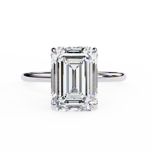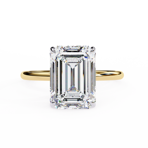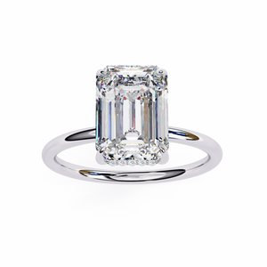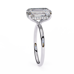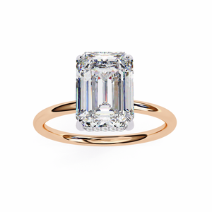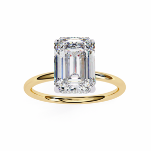 This 14K hidden halo engagement ring showcases an elegant emerald-cut diamond set in a sleek solitaire band. The subtle hidden halo beneath the center stone adds extra brilliance and depth, creating a refined and luxurious look. Perfect for brides who appreciate timeless sophistication with a modern twist.