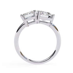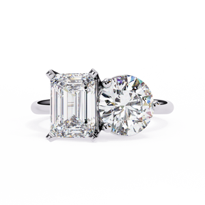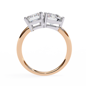 This elegant 14K Toi et Moi engagement ring features a striking pairing of emerald and round diamonds a perfect balance of geometry and brilliance. The open dual-stone design symbolizes two distinct souls coming together, making it an exceptional choice for modern romantics.