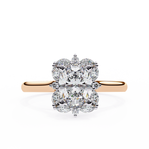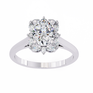 This 14K Oval Cluster Marquise Diamond Engagement Ring radiates brilliance and sophistication. The oval-cut center diamond is beautifully framed by marquise and round accent stones, forming a floral-inspired cluster that sparkles from every angle. Designed in 14K white gold, this timeless piece blends modern luxury with vintage charm a captivating symbol of everlasting love.