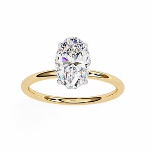 This sophisticated 14K diamond engagement ring showcases a stunning oval-cut solitaire set in a timeless six-prong design that maximizes brilliance and light reflection. The slim, polished band enhances the diamond’s beauty, creating an effortlessly elegant and modern look. Crafted for comfort and enduring style, this comfort fit ring is the perfect symbol of eternal love and refined simplicity.