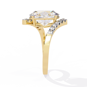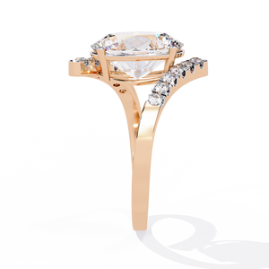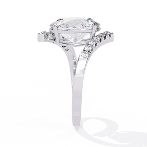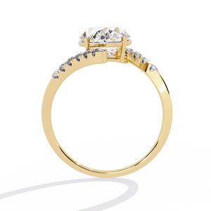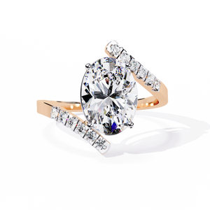 This 14K Oval Diamond Open Twist Engagement Ring highlights a stunning oval-cut center diamond set between gracefully curved open bands accented with round brilliant diamonds. The sleek, asymmetrical twist design blends classic sparkle with modern sophistication a captivating choice for a timeless proposal.